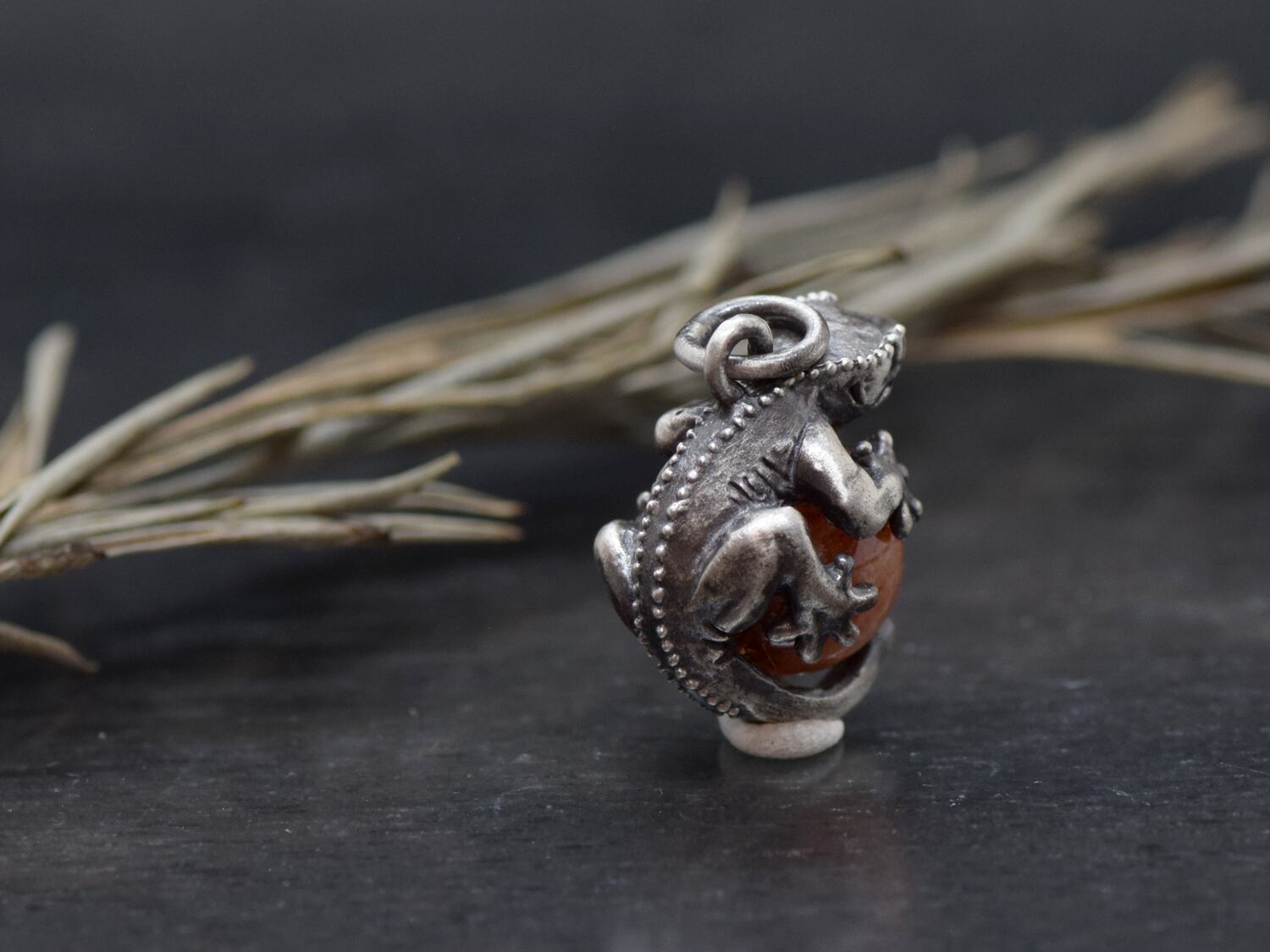 ■商品名 限定1点 クレステッドゲッコー(オウカンミカドヤモリ)玉ペンダント ガーデンクォーツ1 革ひもネックレス付き