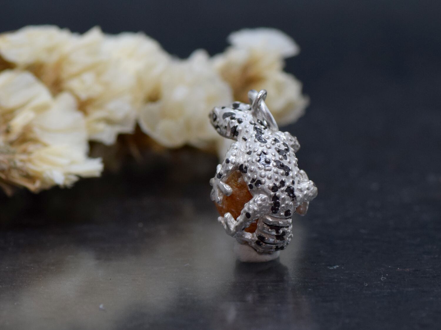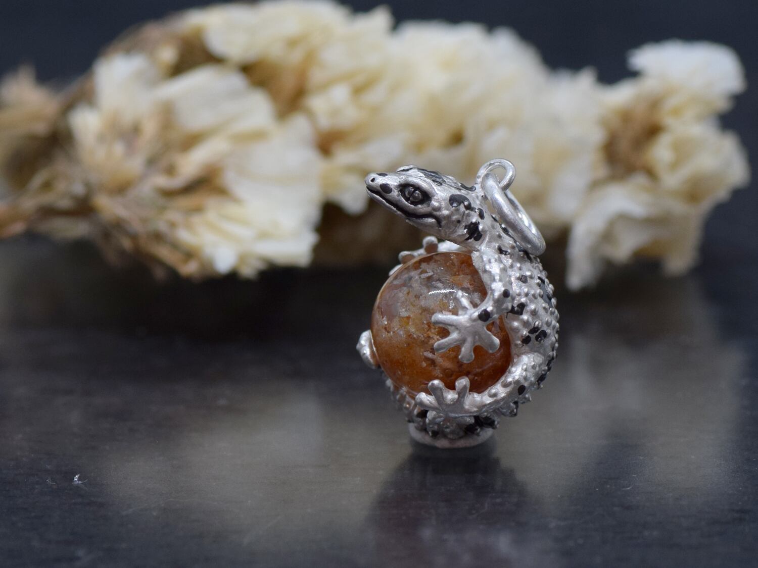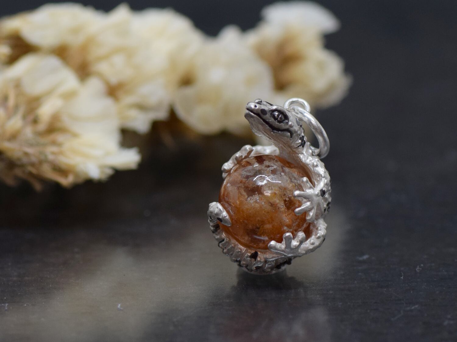 限定1点 レオパードゲッコー (ヒョウモントカゲモドキ) 玉ペンダント ガーデンクォーツ1 革ひもネックレス付き