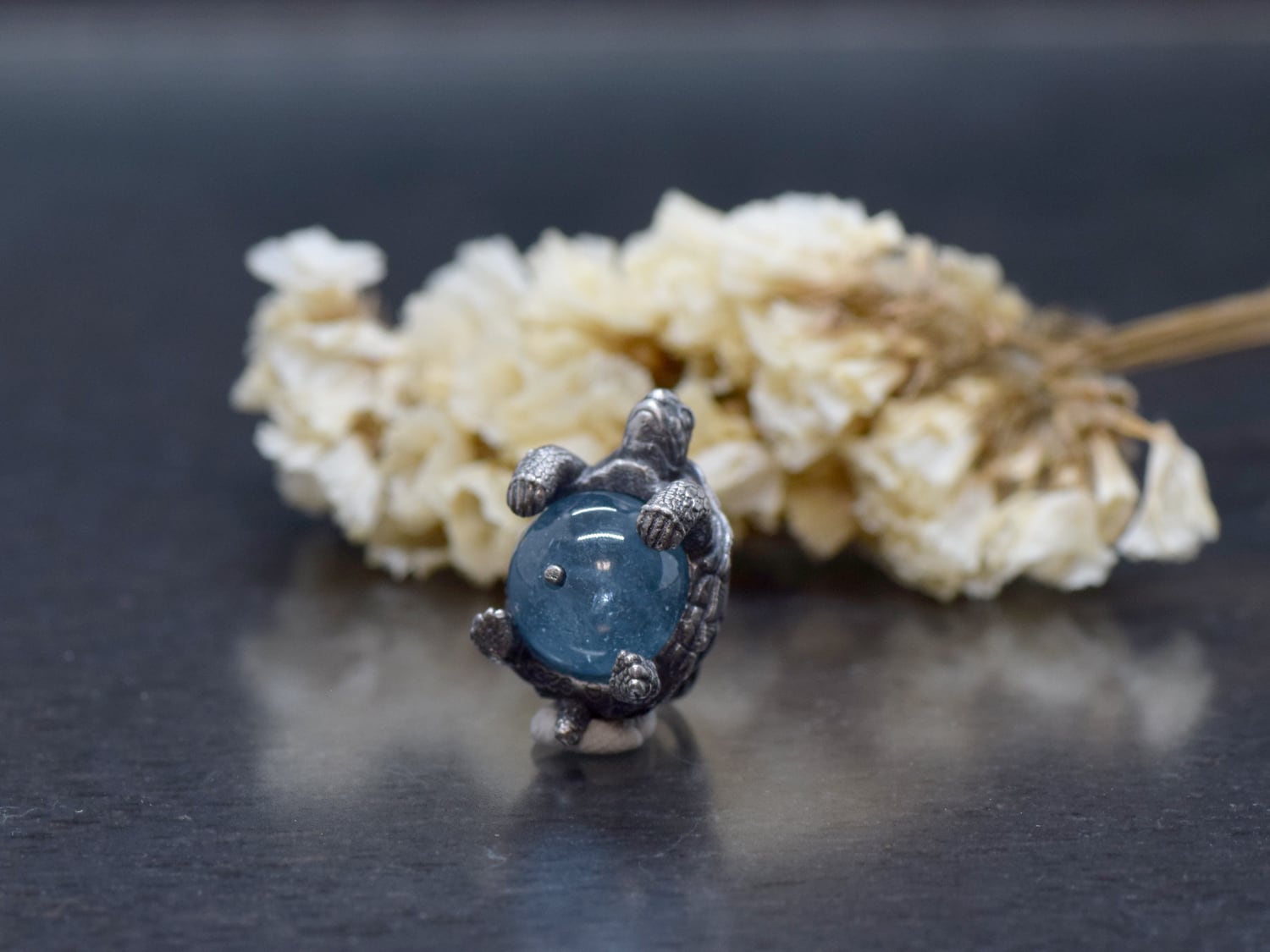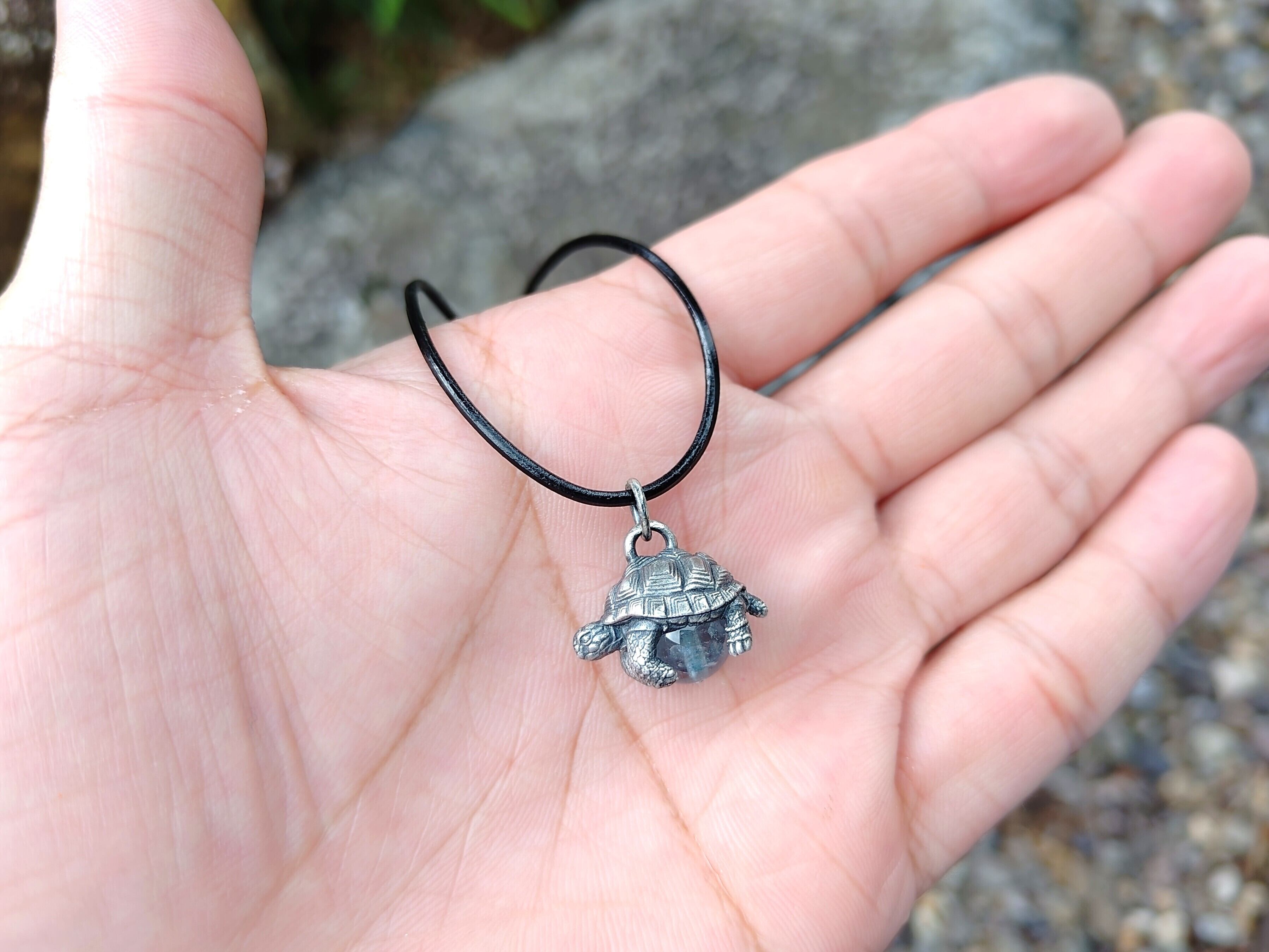 ■商品名 限定1点 身守りリクガメ玉ペンダント ブルートパーズ 革ヒモネックレス付き