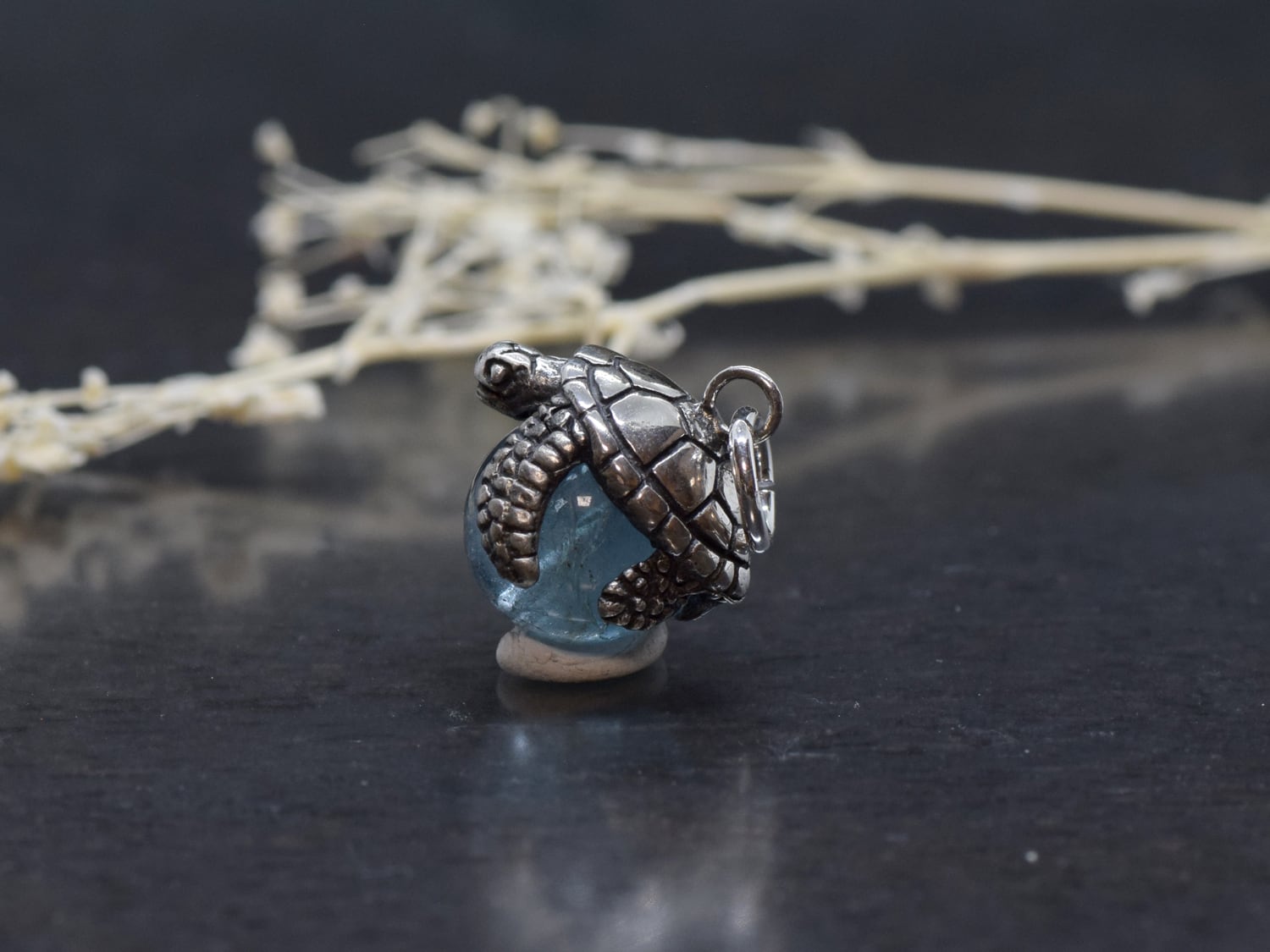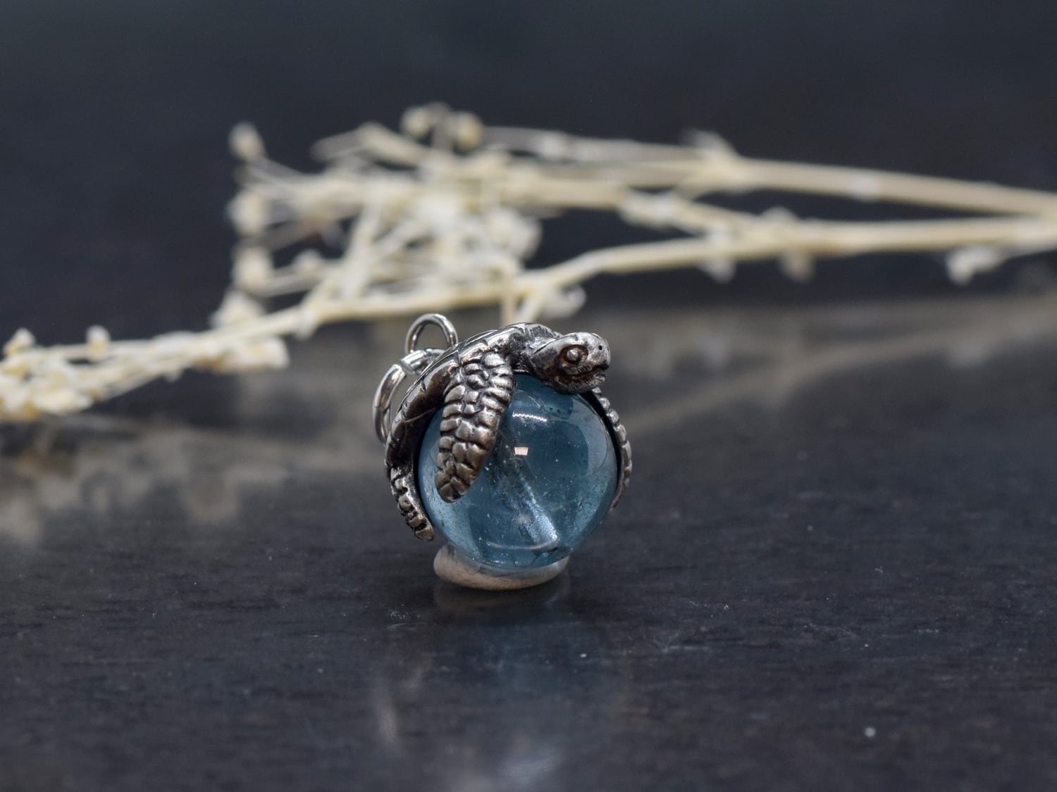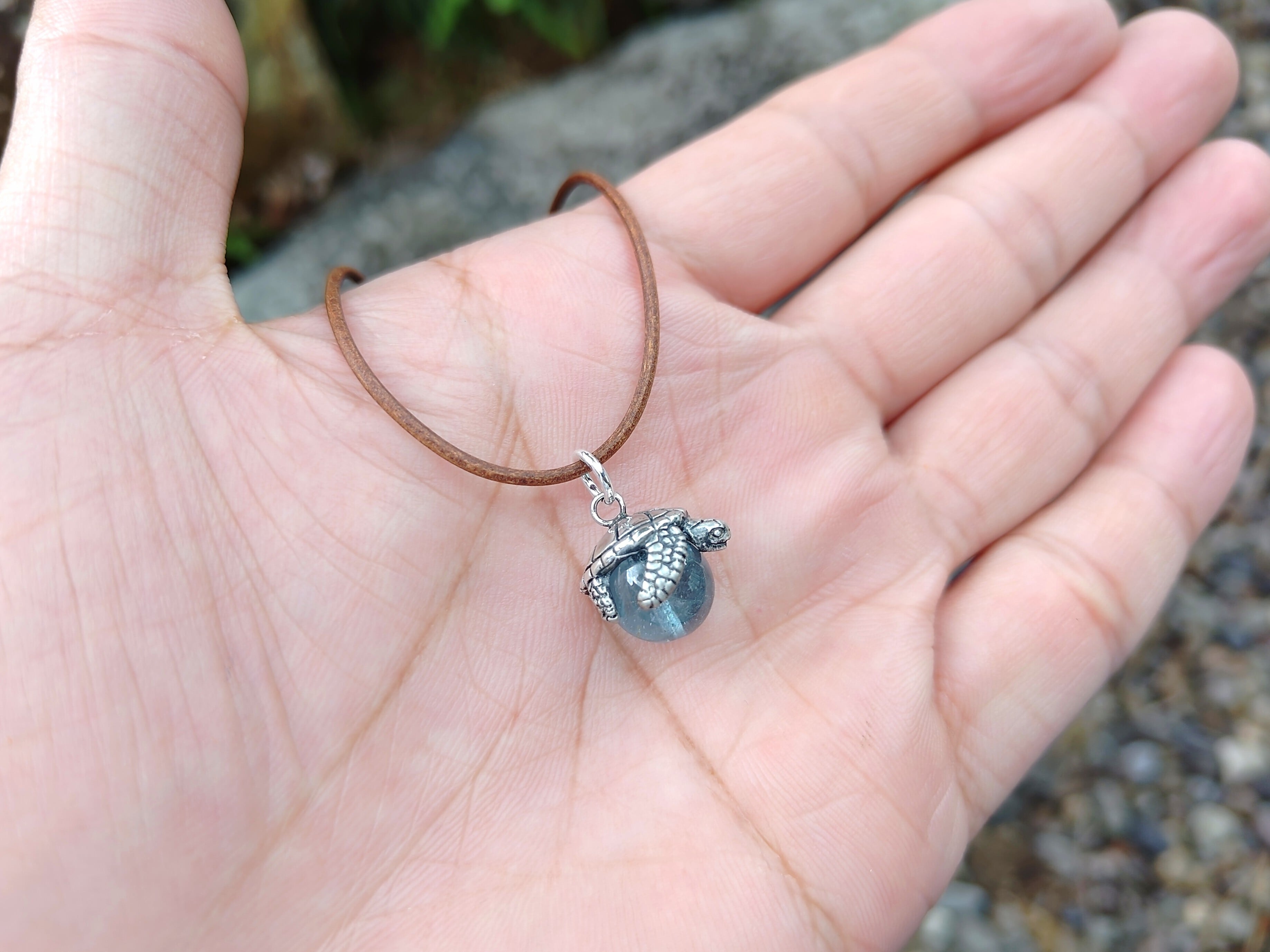 ■商品名 限定1点 幸福のウミガメ玉ペンダント ブルートパーズ 皮ひもネックレス付き