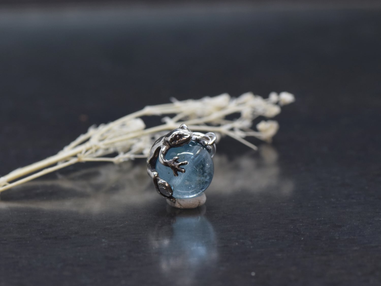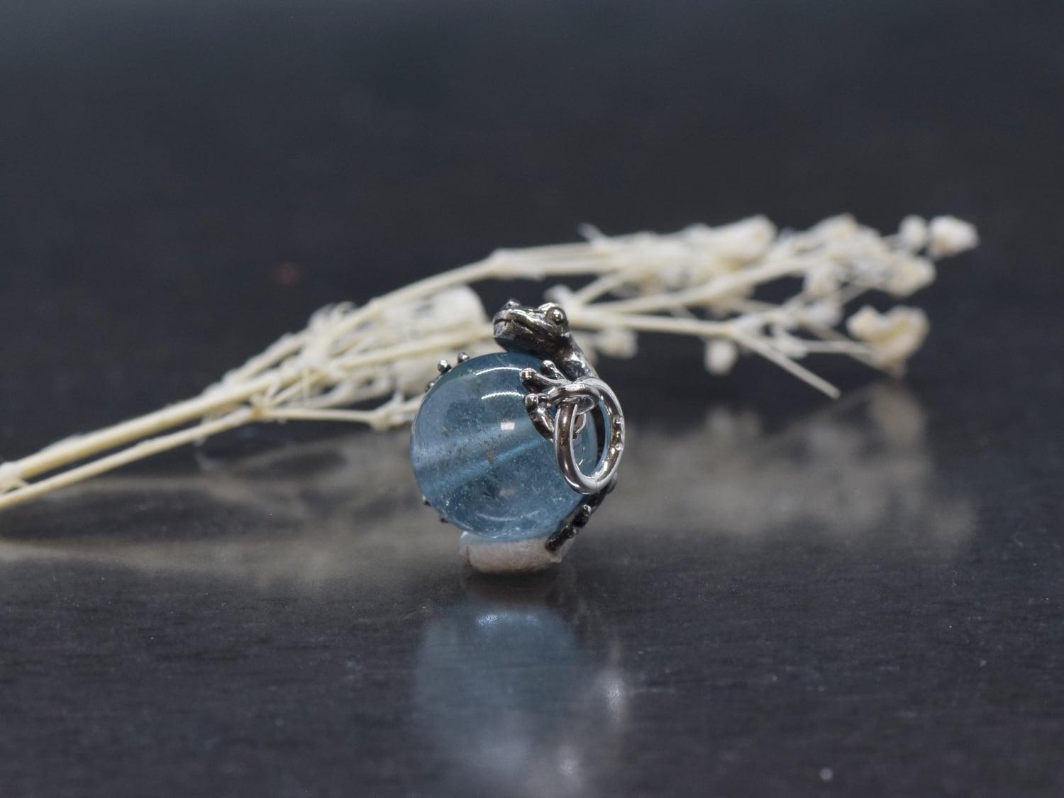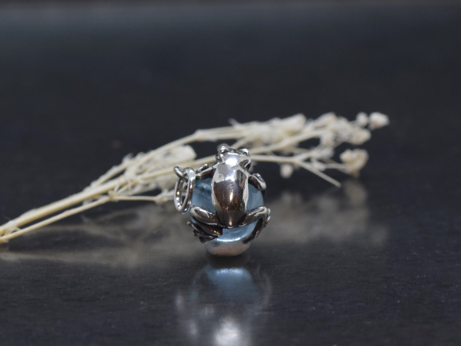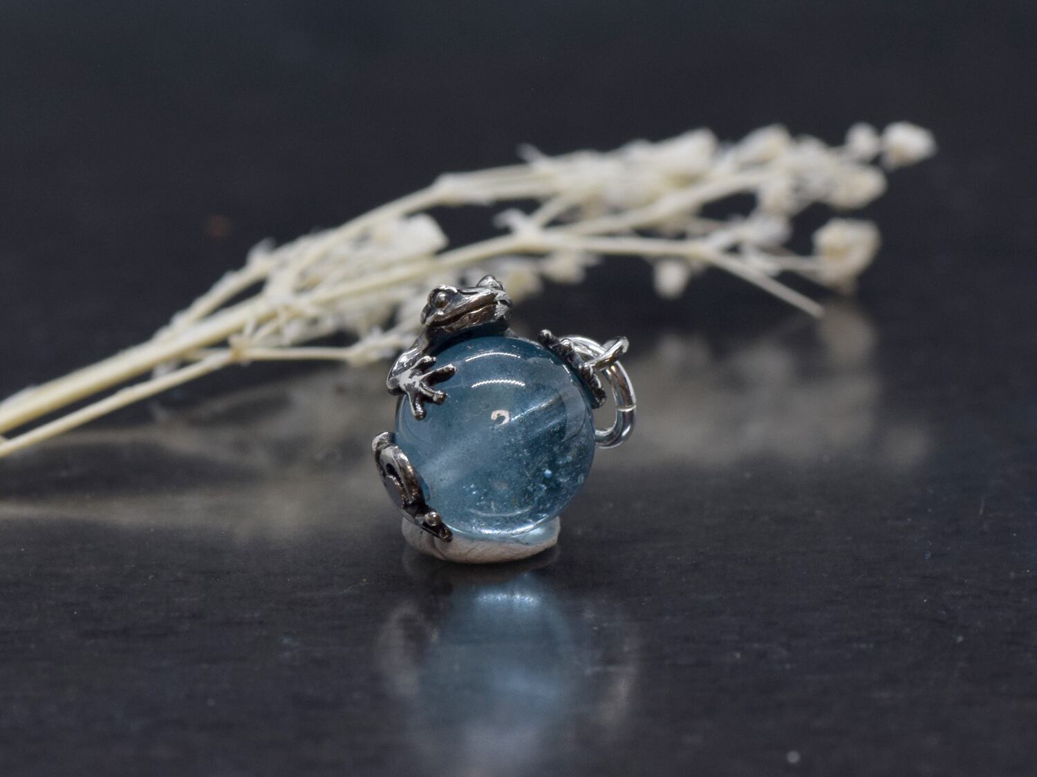 ■商品名 限定1点 蛙(カエル)玉ペンダントブルートパーズ 革ヒモネックレス付き