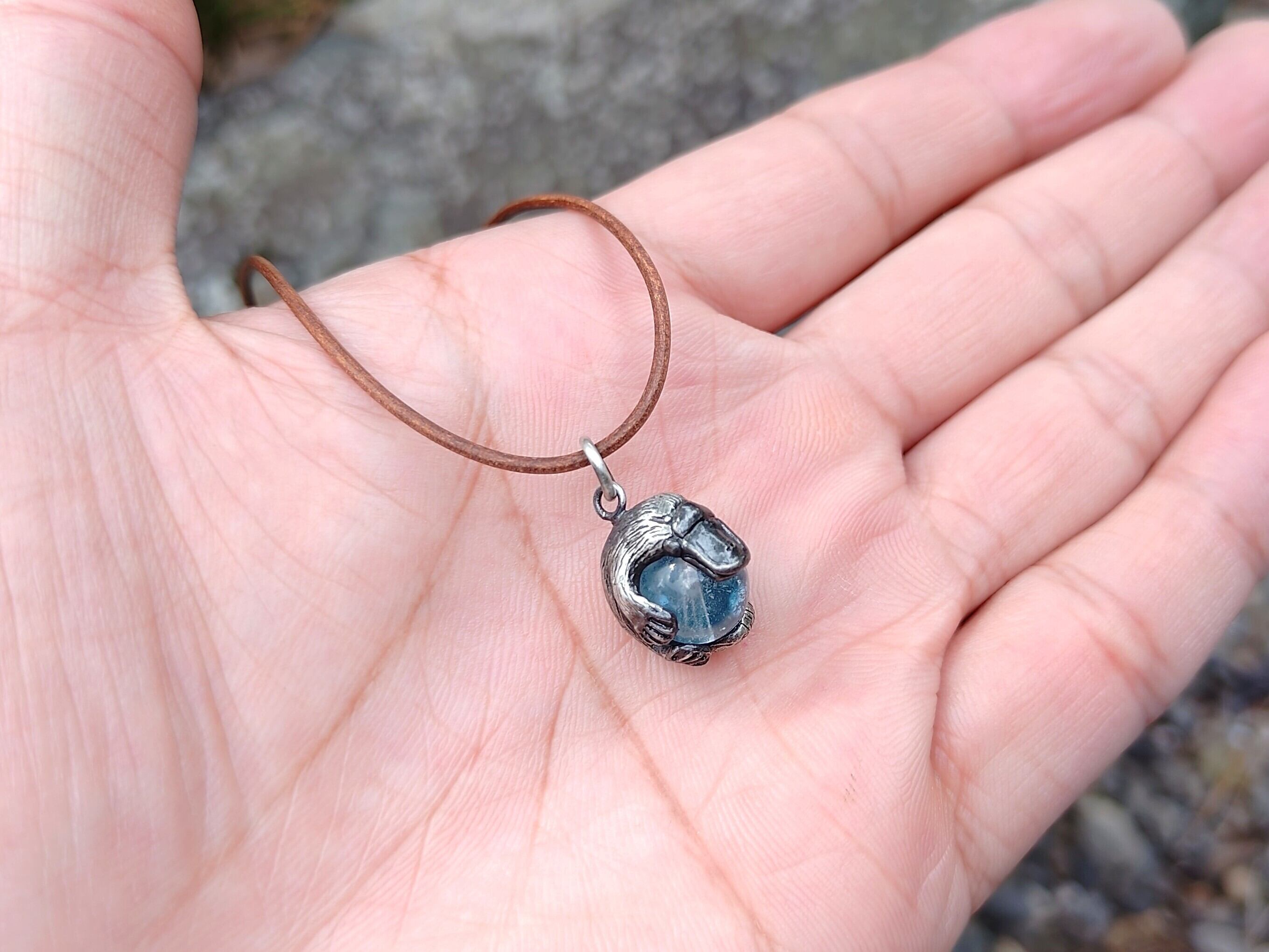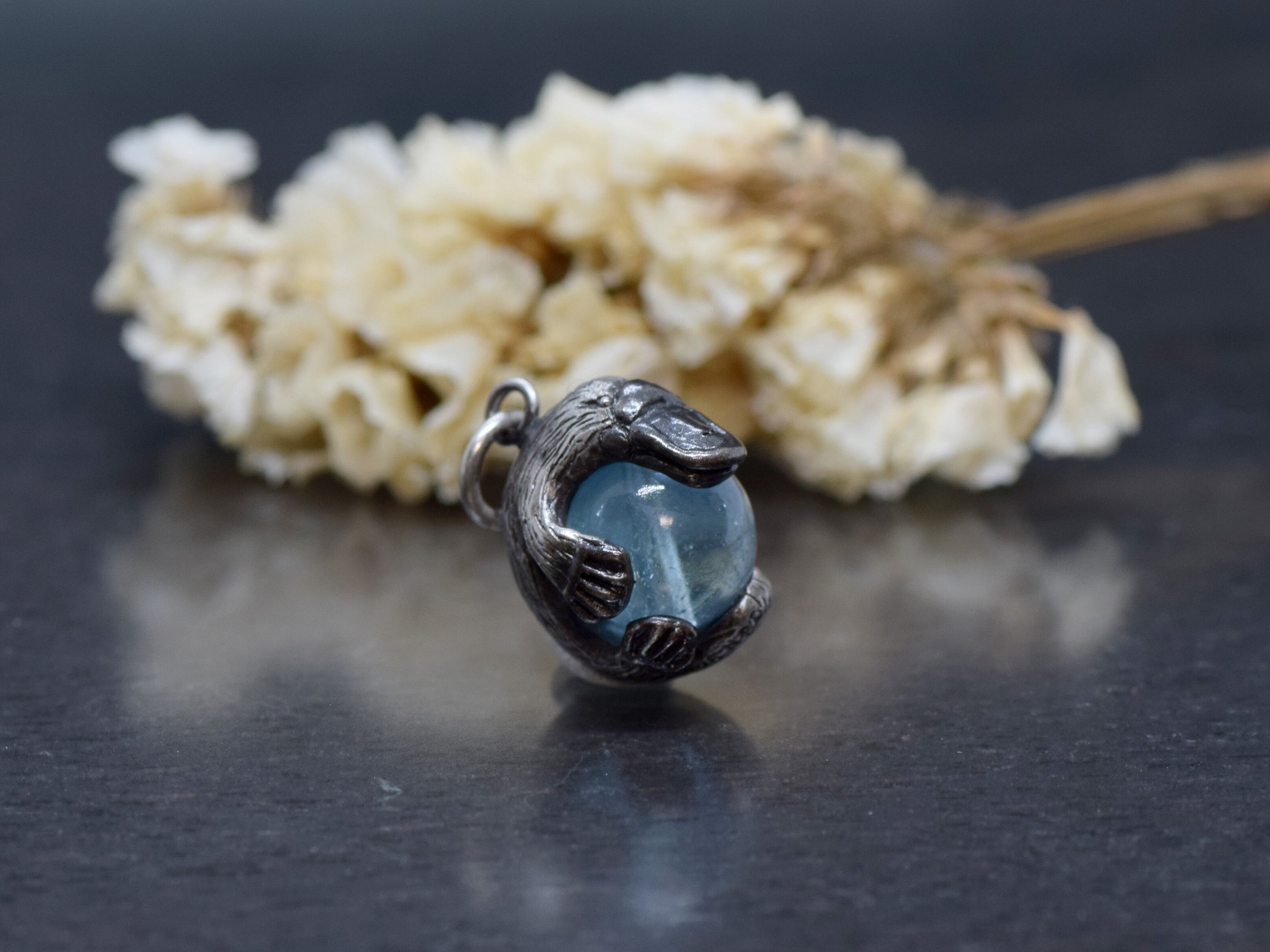 ■商品名 限定1点 生きる化石!珍獣カモノハシ玉ペンダント ブルートパーズ 革ひもネックレス付き