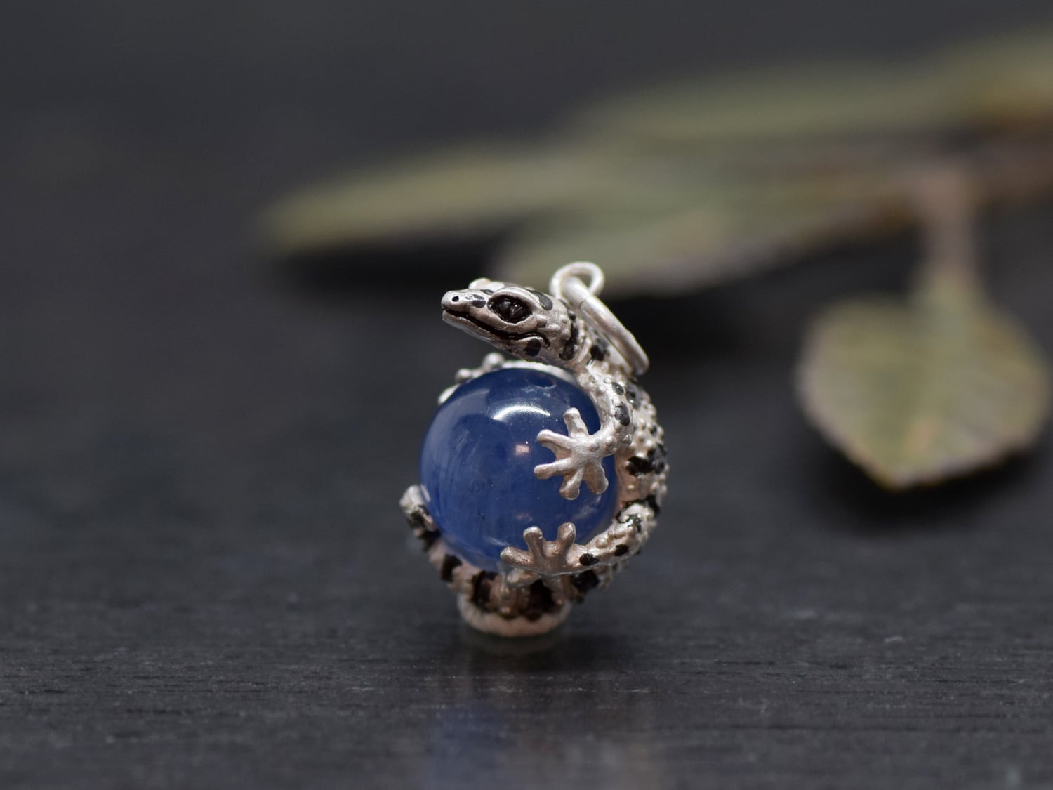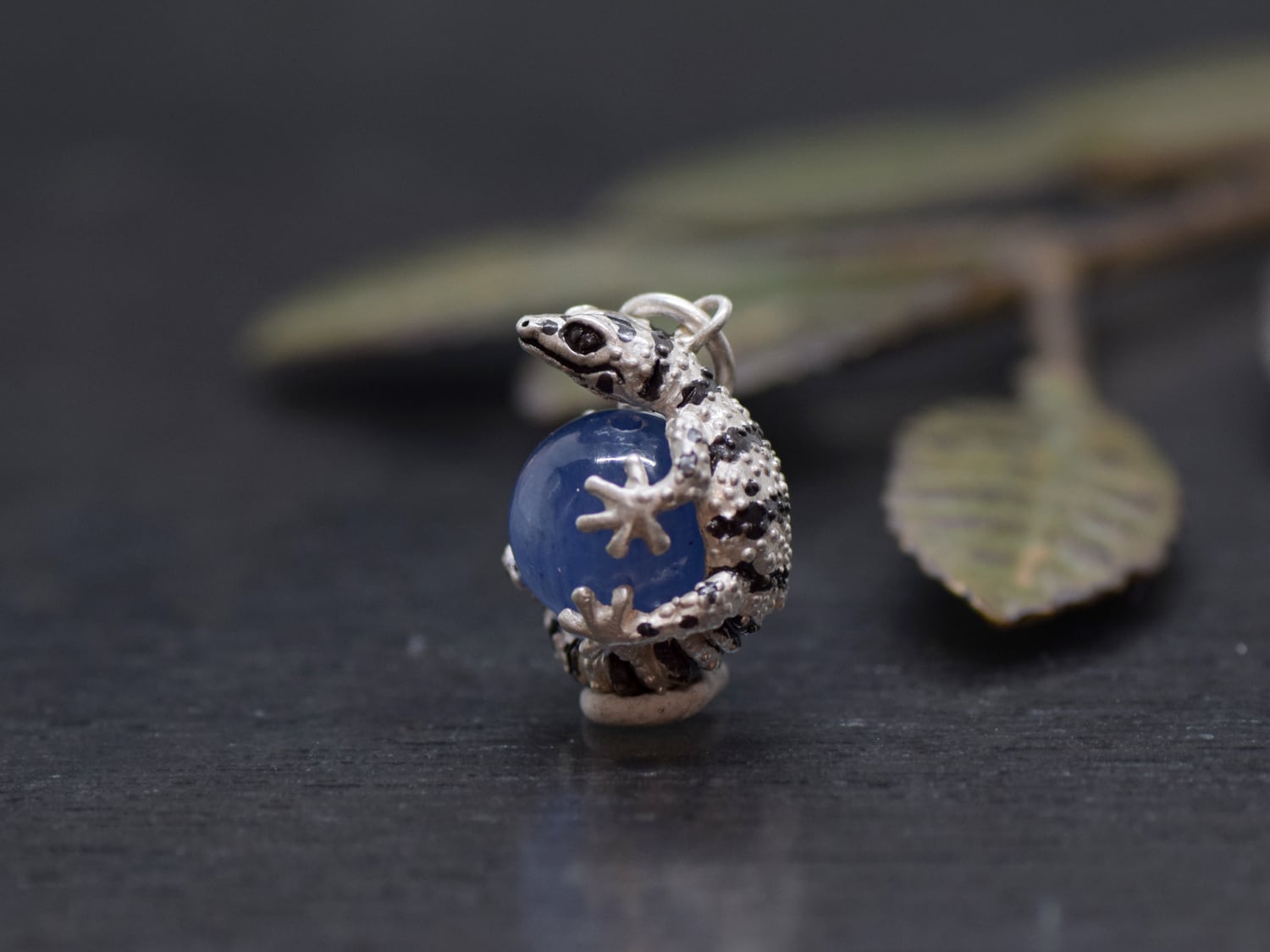 ■商品名 限定1点 レオパードゲッコー (ヒョウモントカゲモドキ) 玉ペンダント カイヤナイト 革ひもネックレス付き