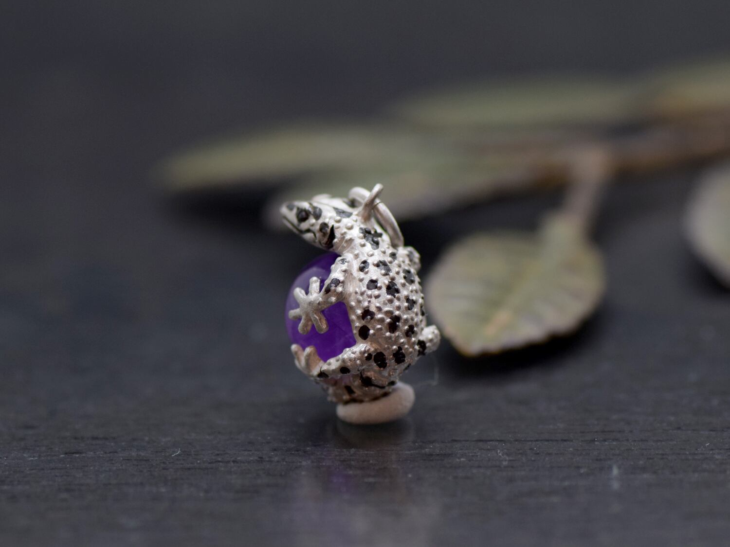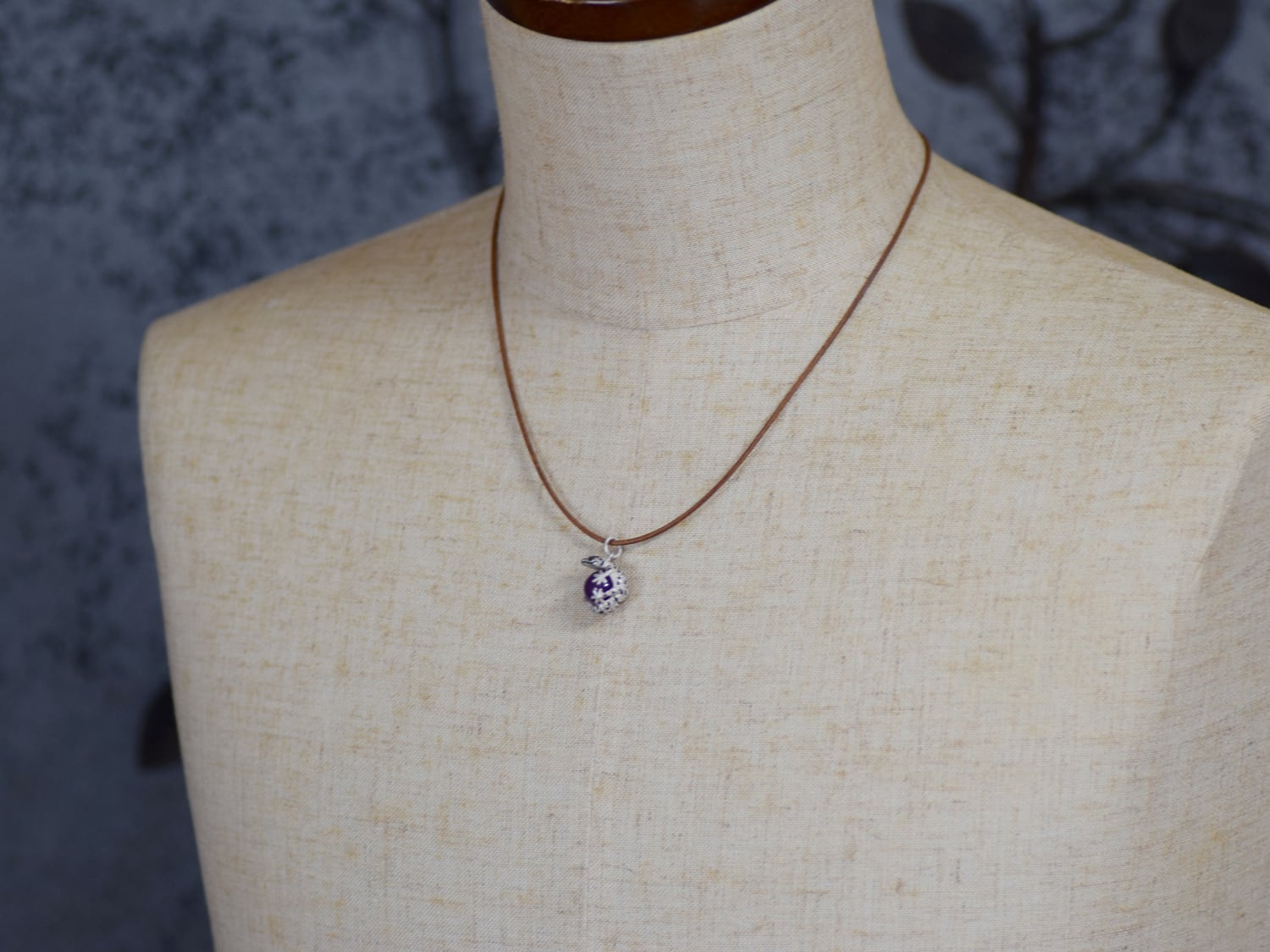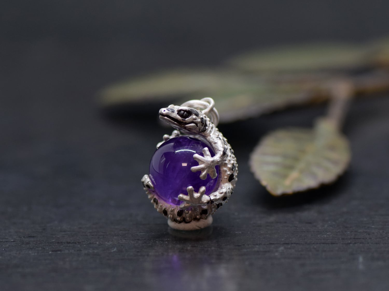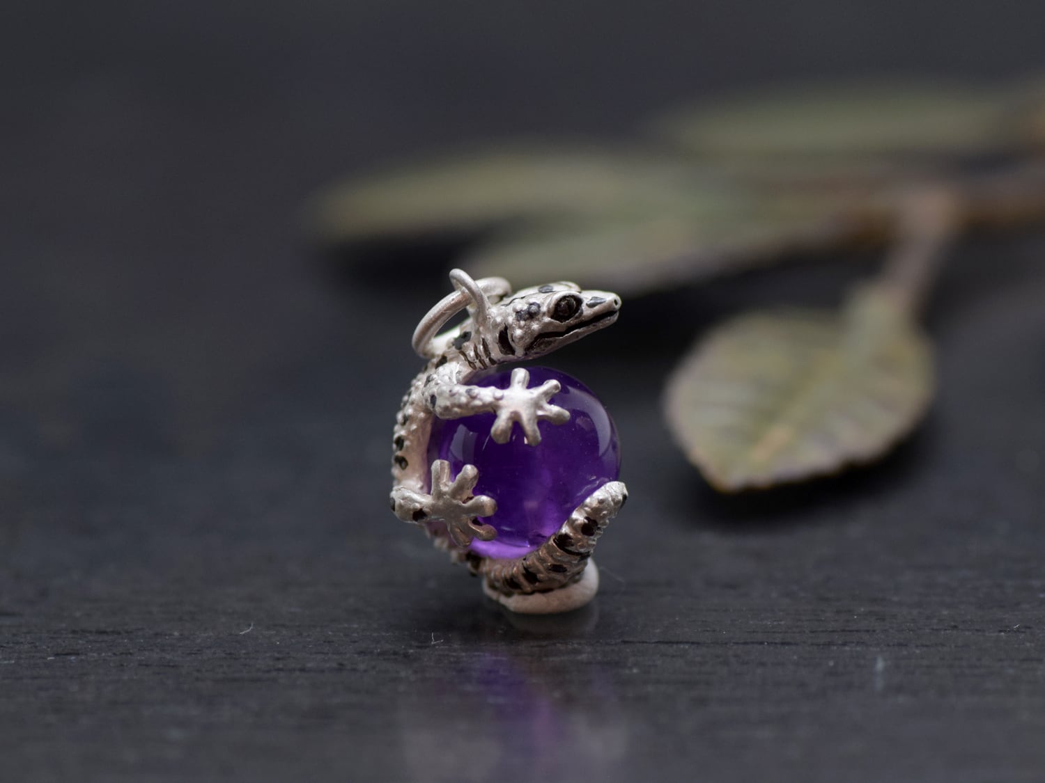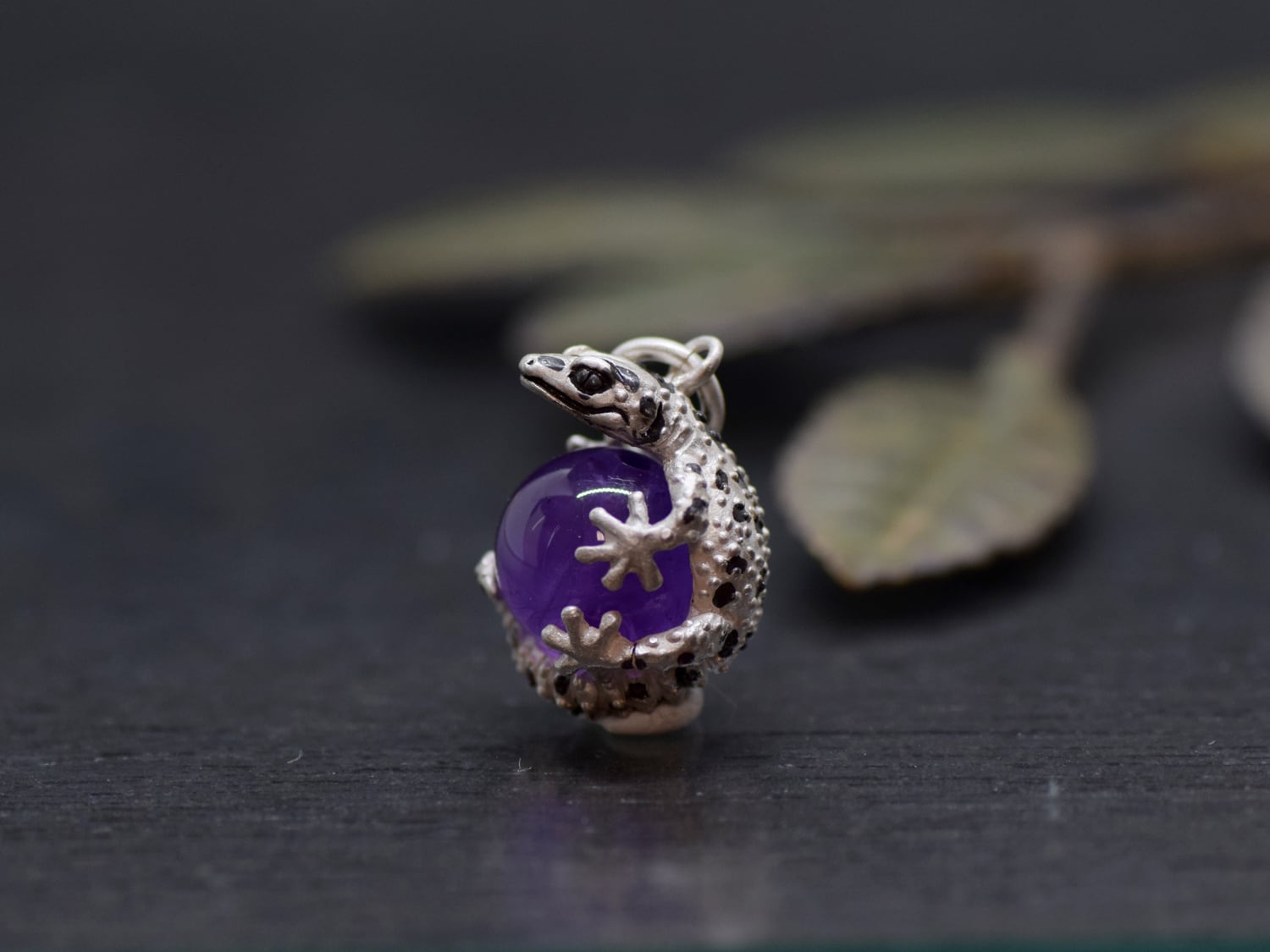 ■商品名 限定1点 レオパードゲッコー (ヒョウモントカゲモドキ) 玉ペンダント アメジスト 革ひもネックレス付き