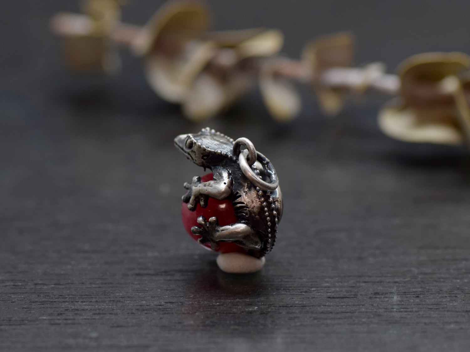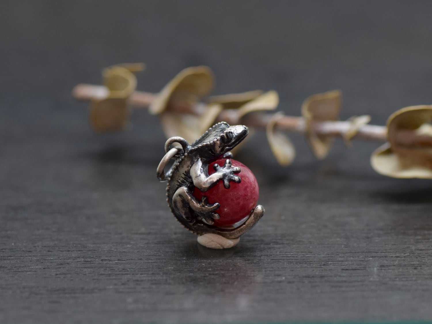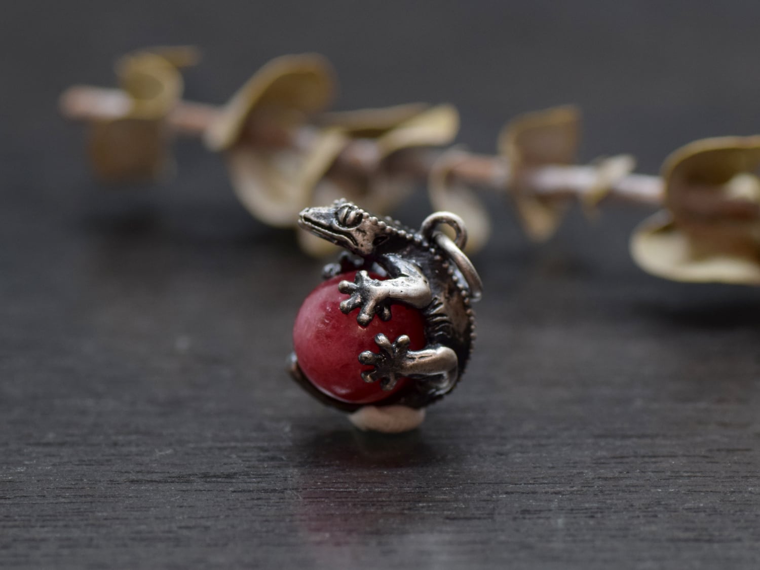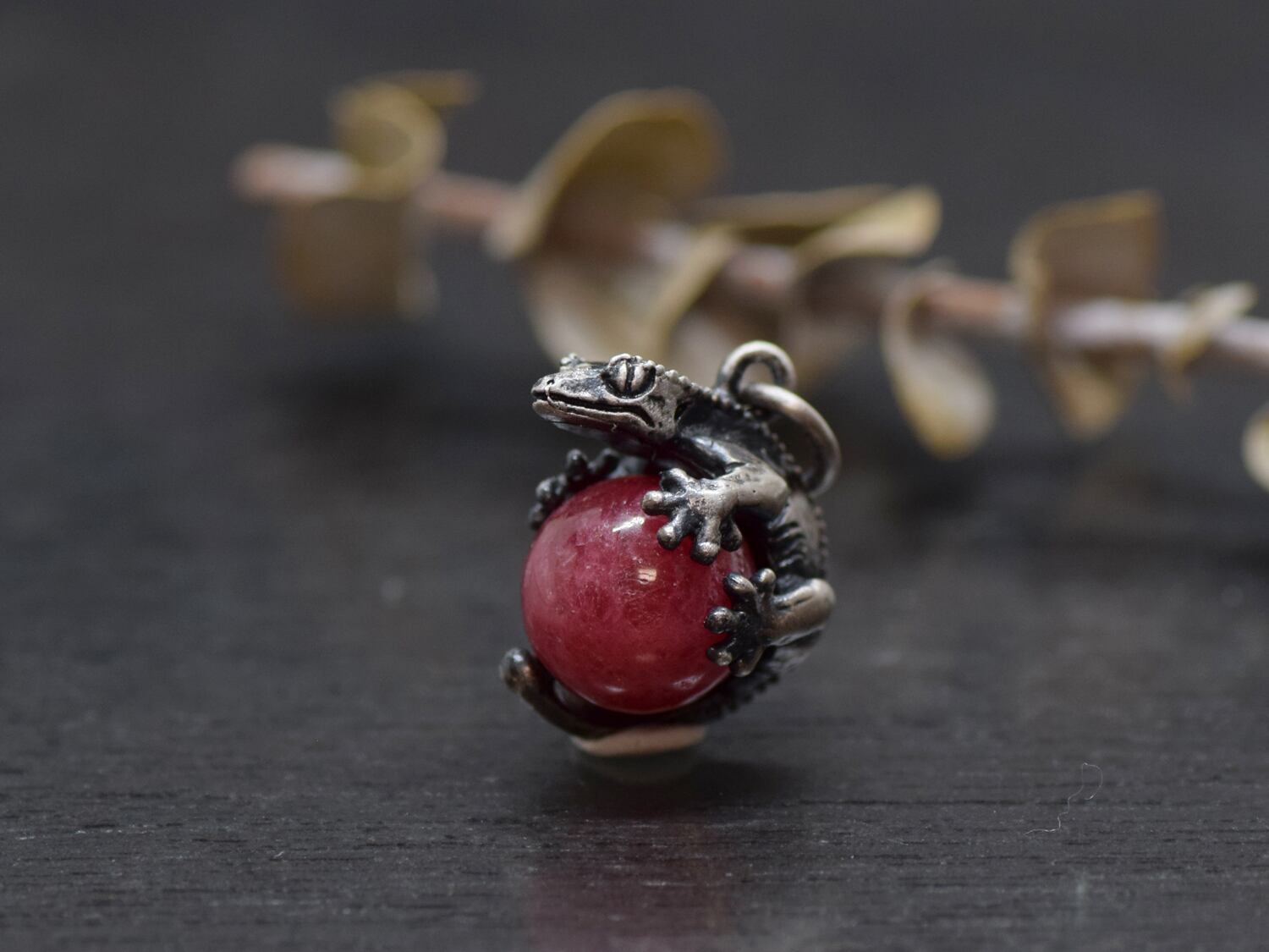 ■商品名 限定1点 クレステッドゲッコー(オウカンミカドヤモリ)玉ペンダント ロードナイト 革ひもネックレス付き
