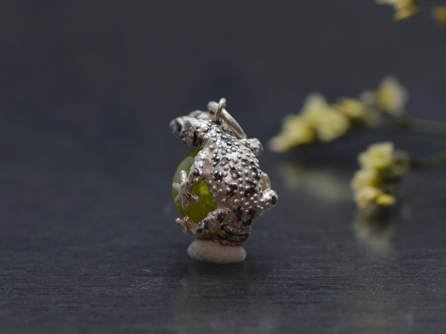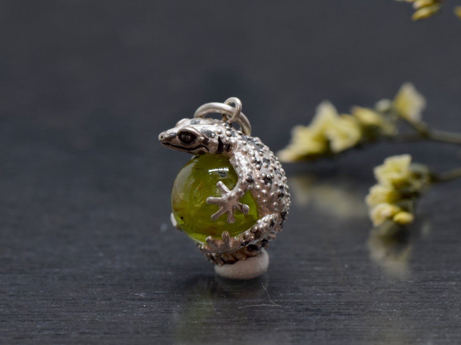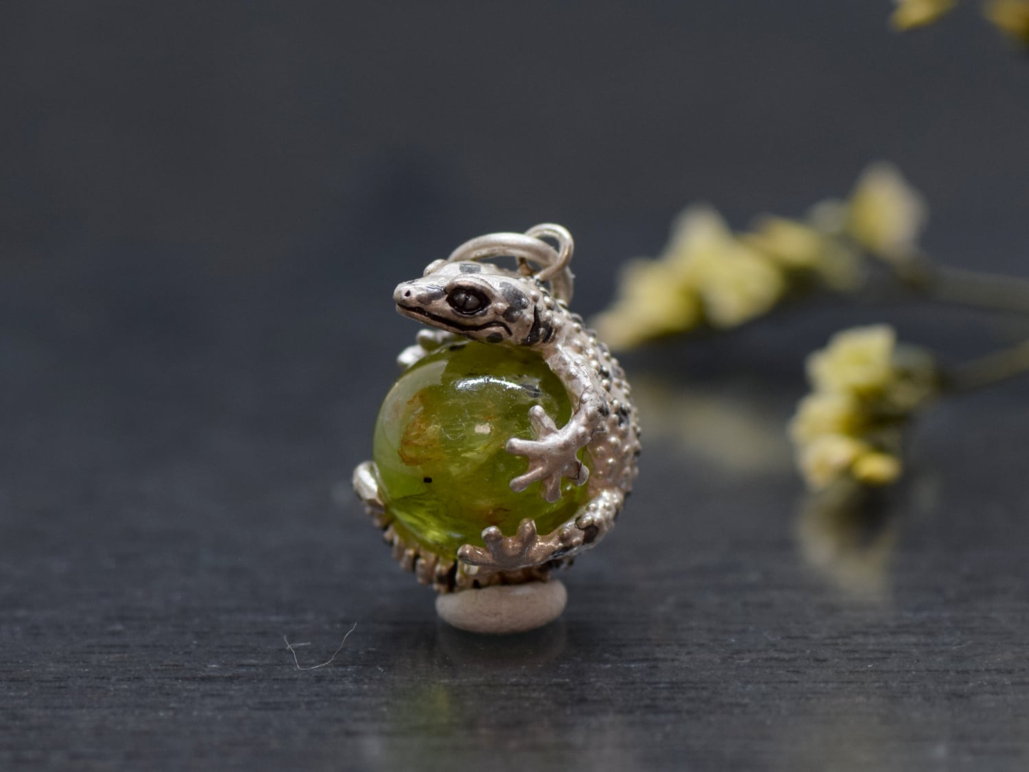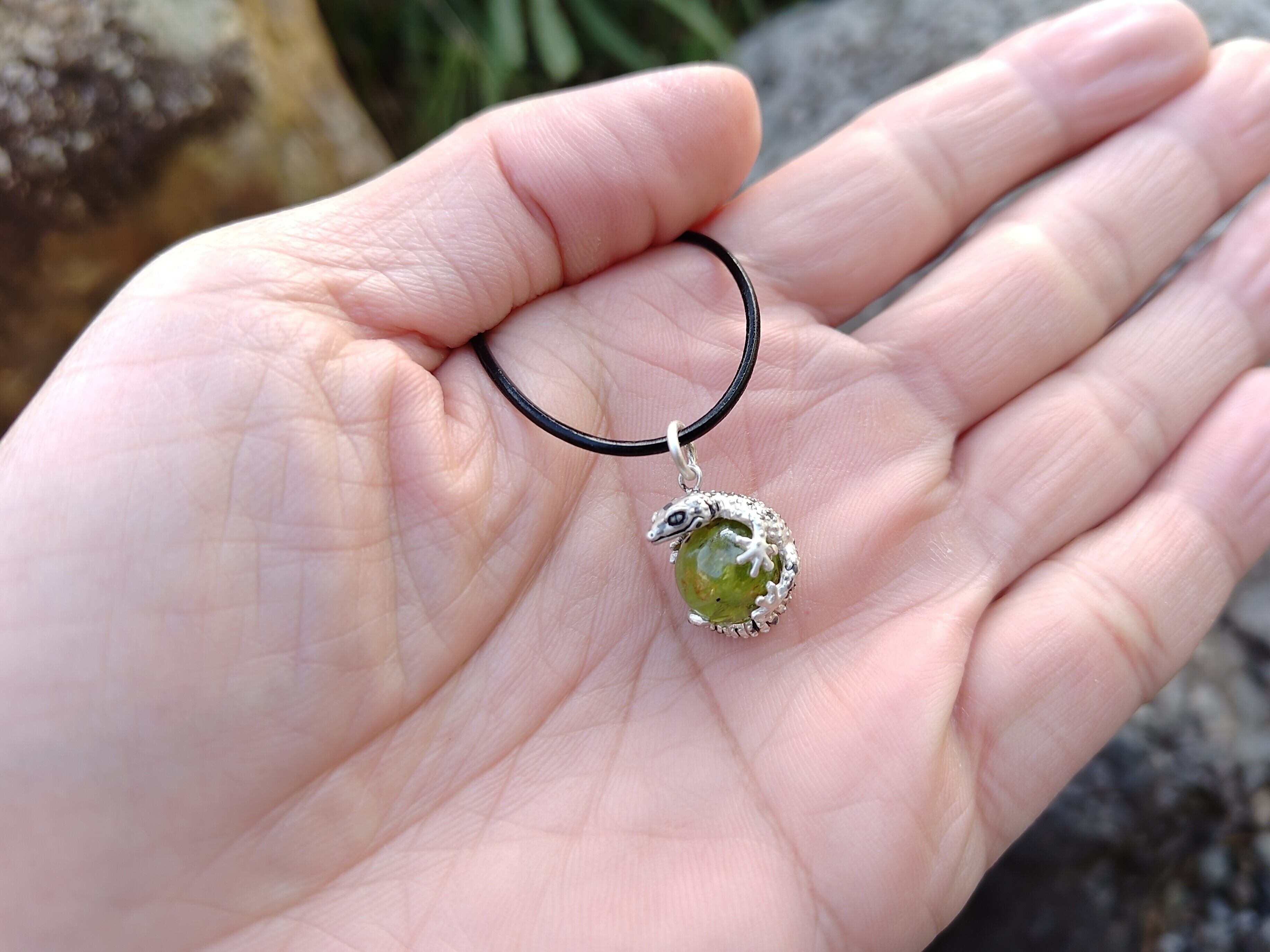■商品名 限定1点 レオパードゲッコー (ヒョウモントカゲモドキ) 玉ペンダント ペリドット 革ひもネックレス付き