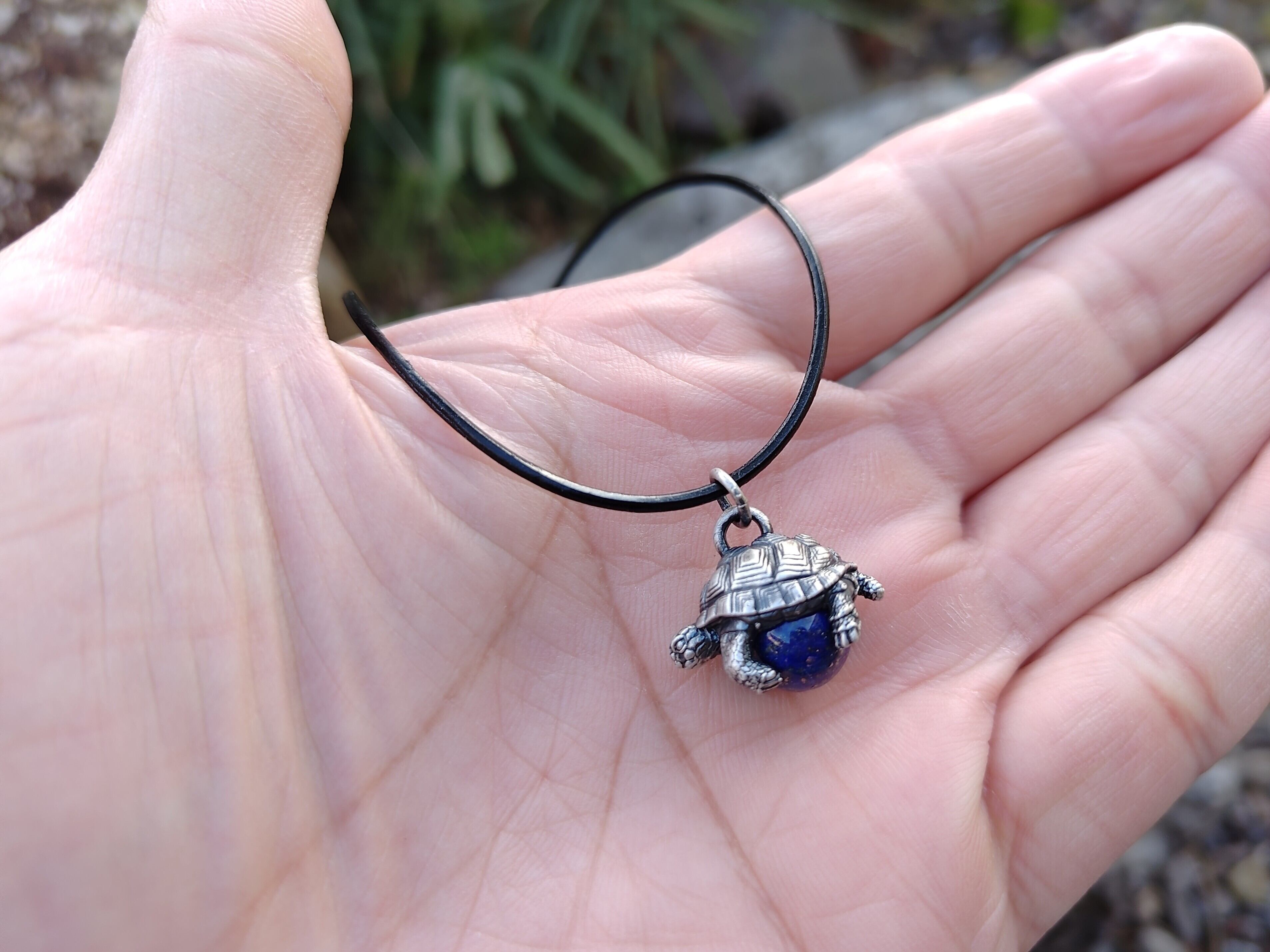 ■商品名 限定1点 身守りリクガメ玉ペンダント ラピスラズリ 革ヒモネックレス付き