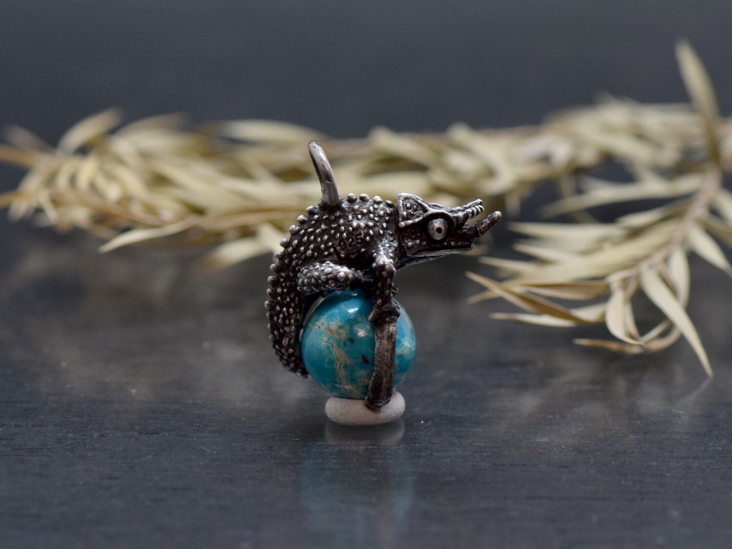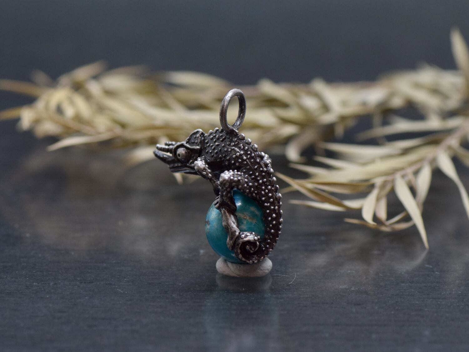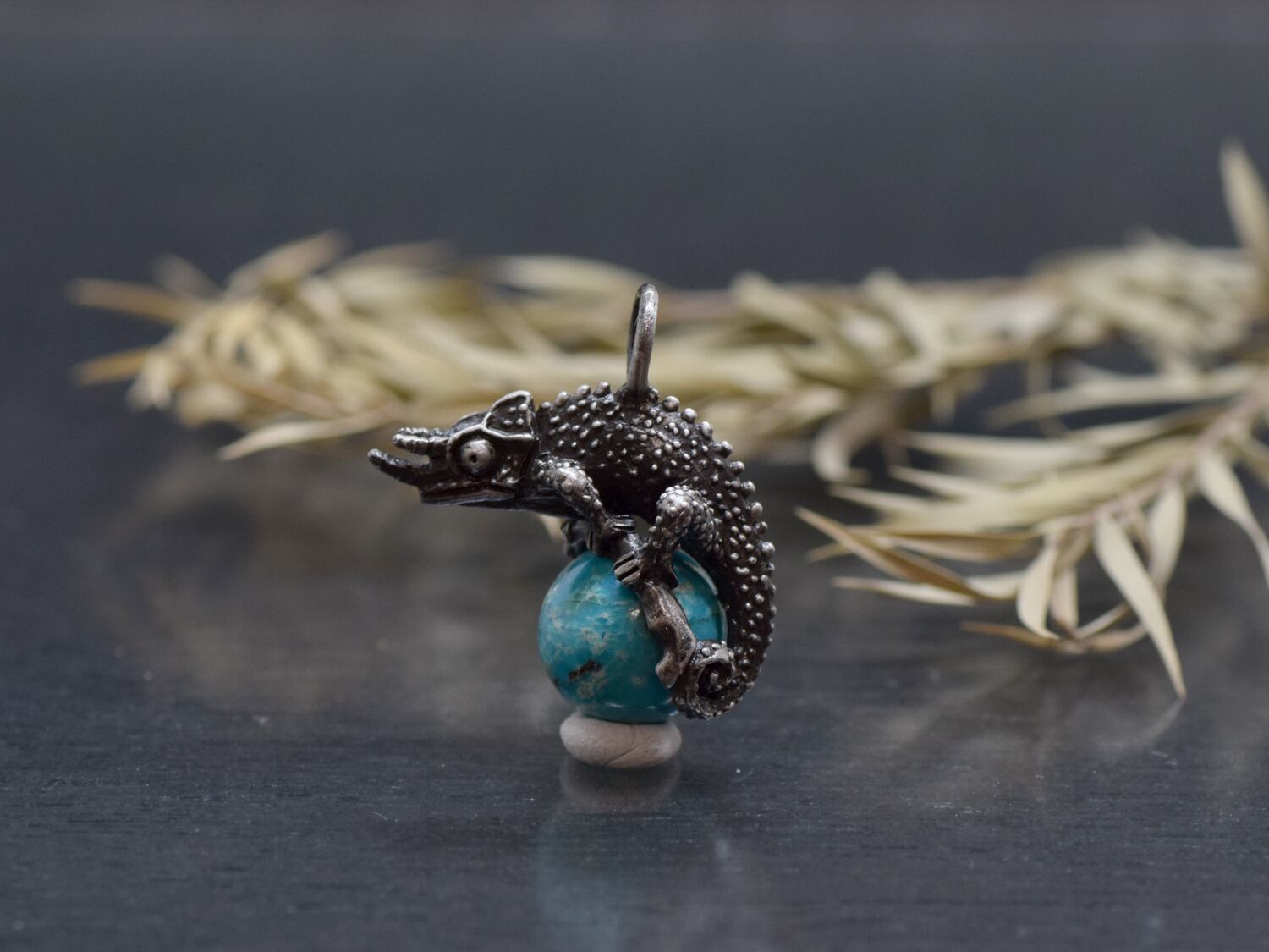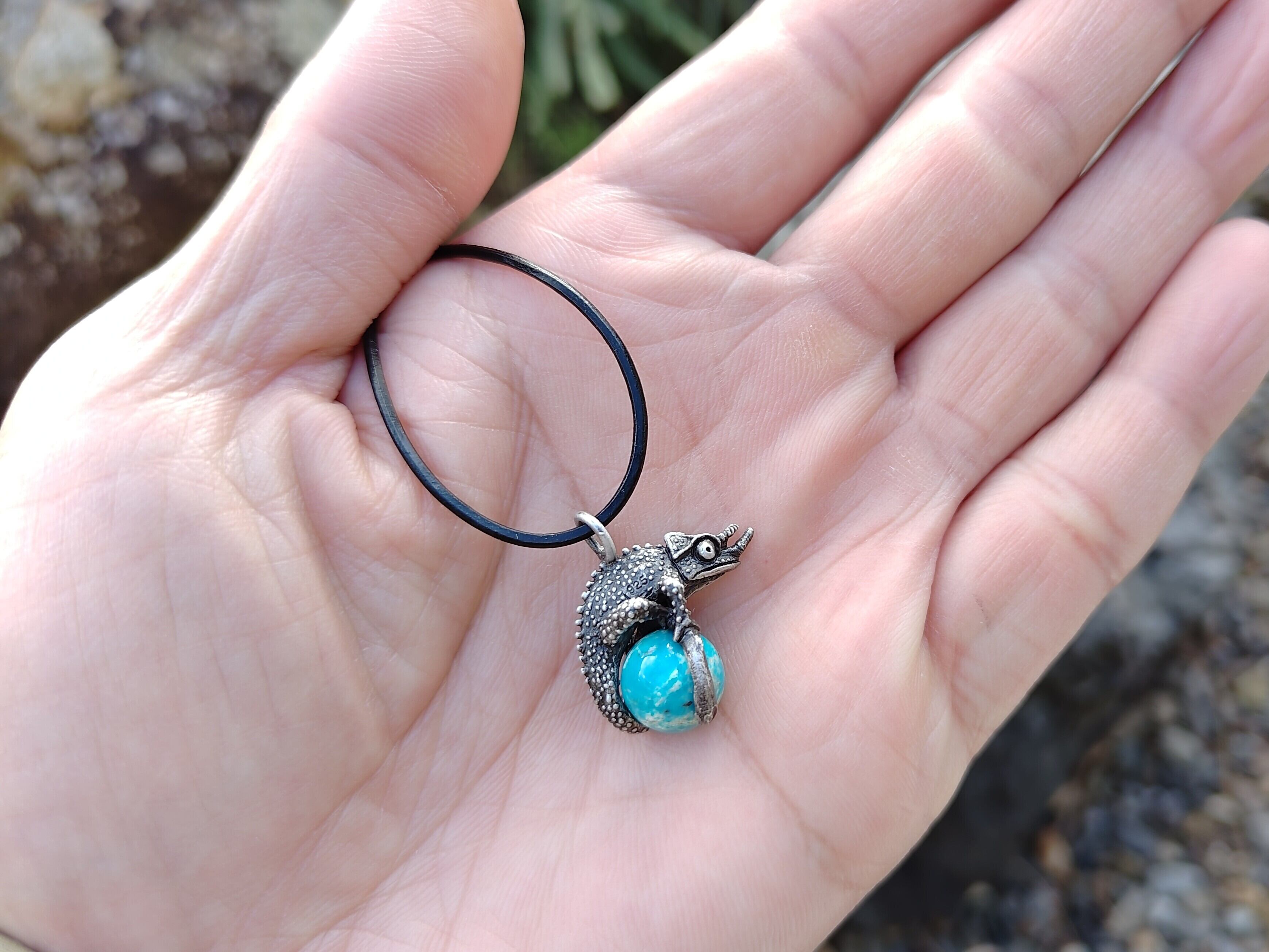 ■商品名 限定1点 ジャクソンカメレオン玉ペンダント ターコイズ 革ひもネックレス付き