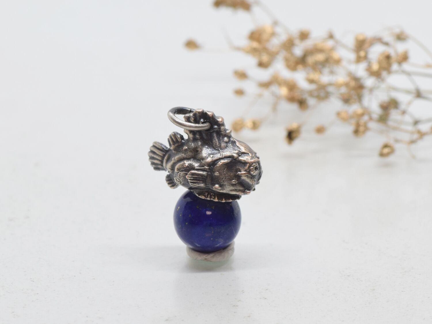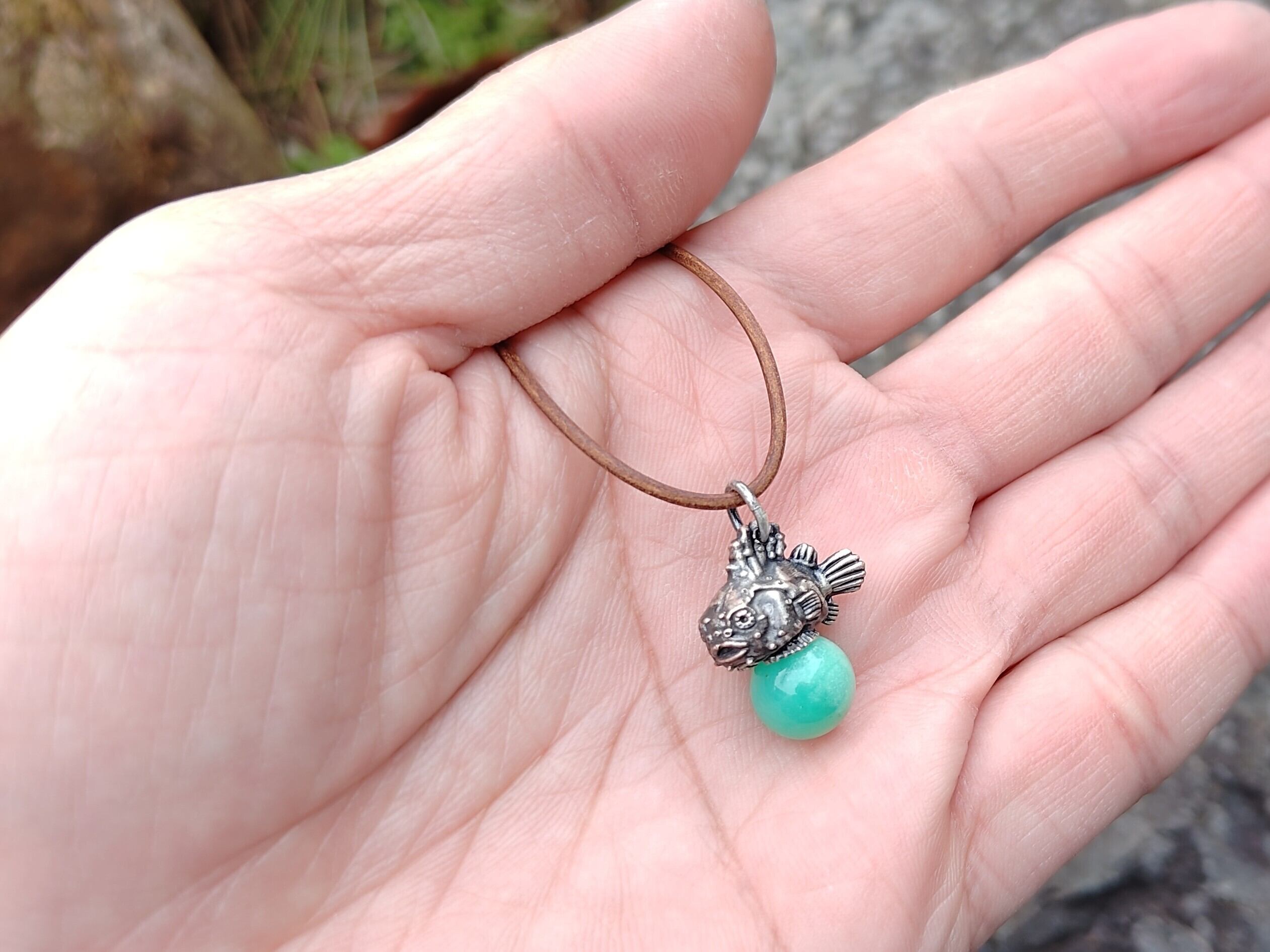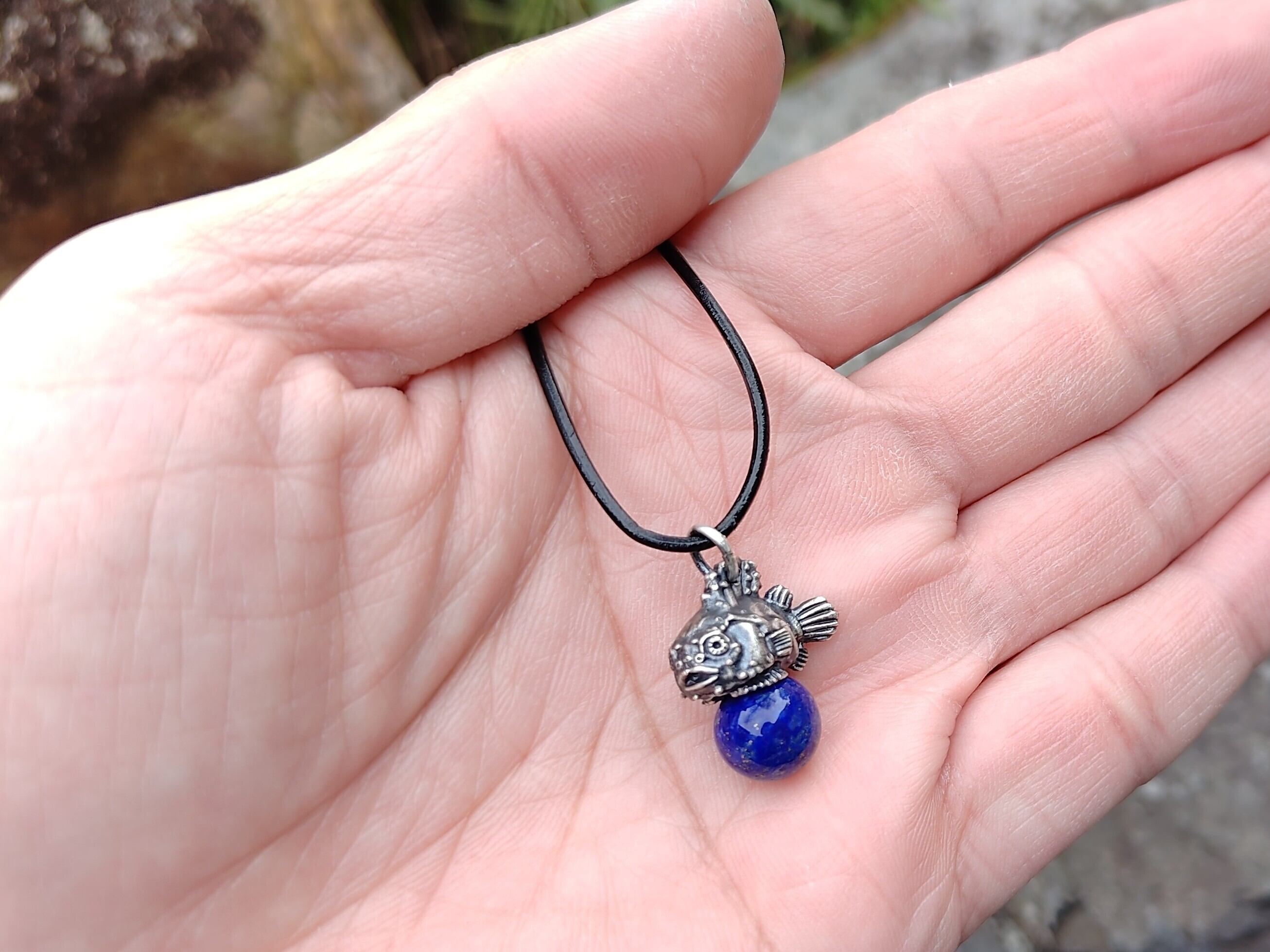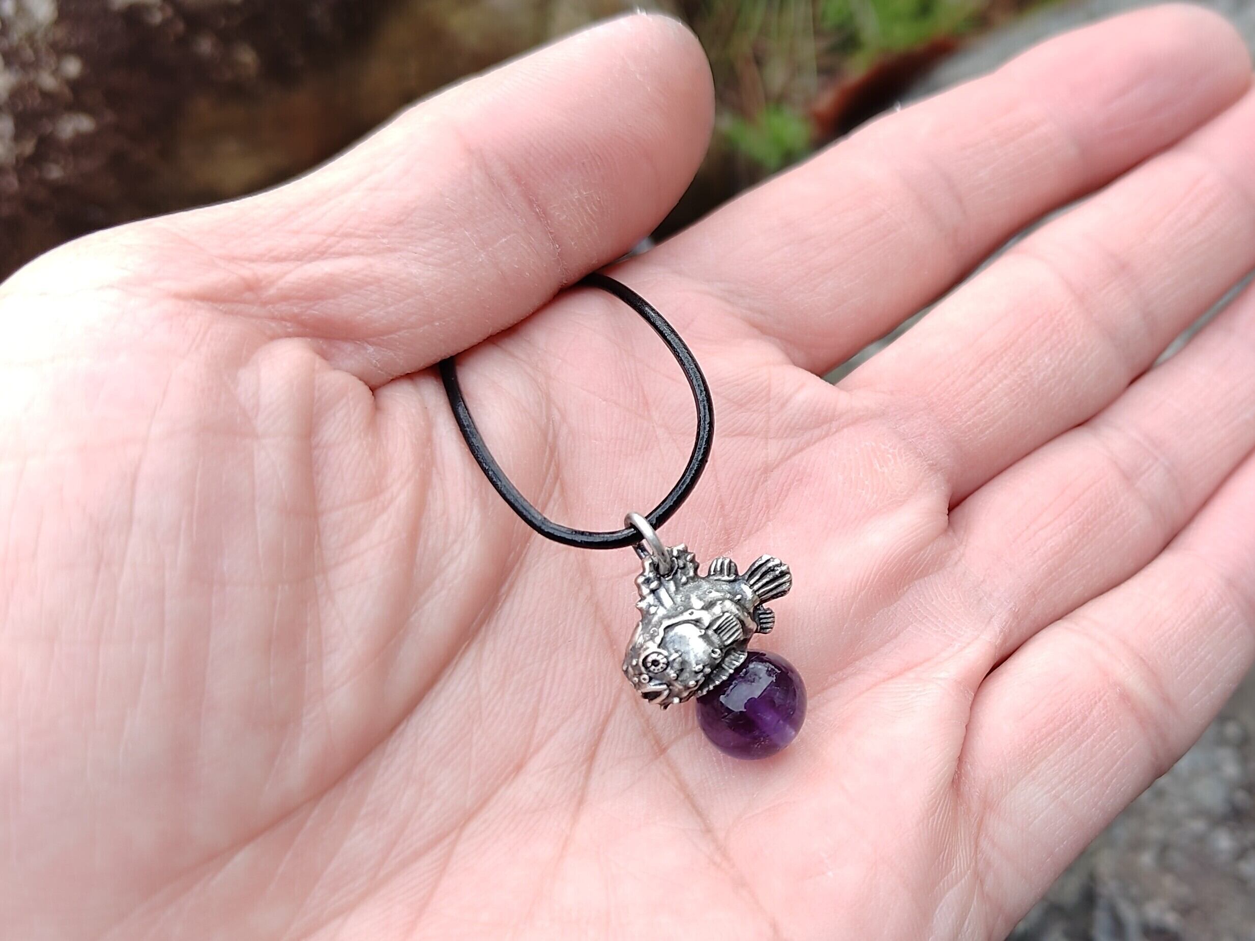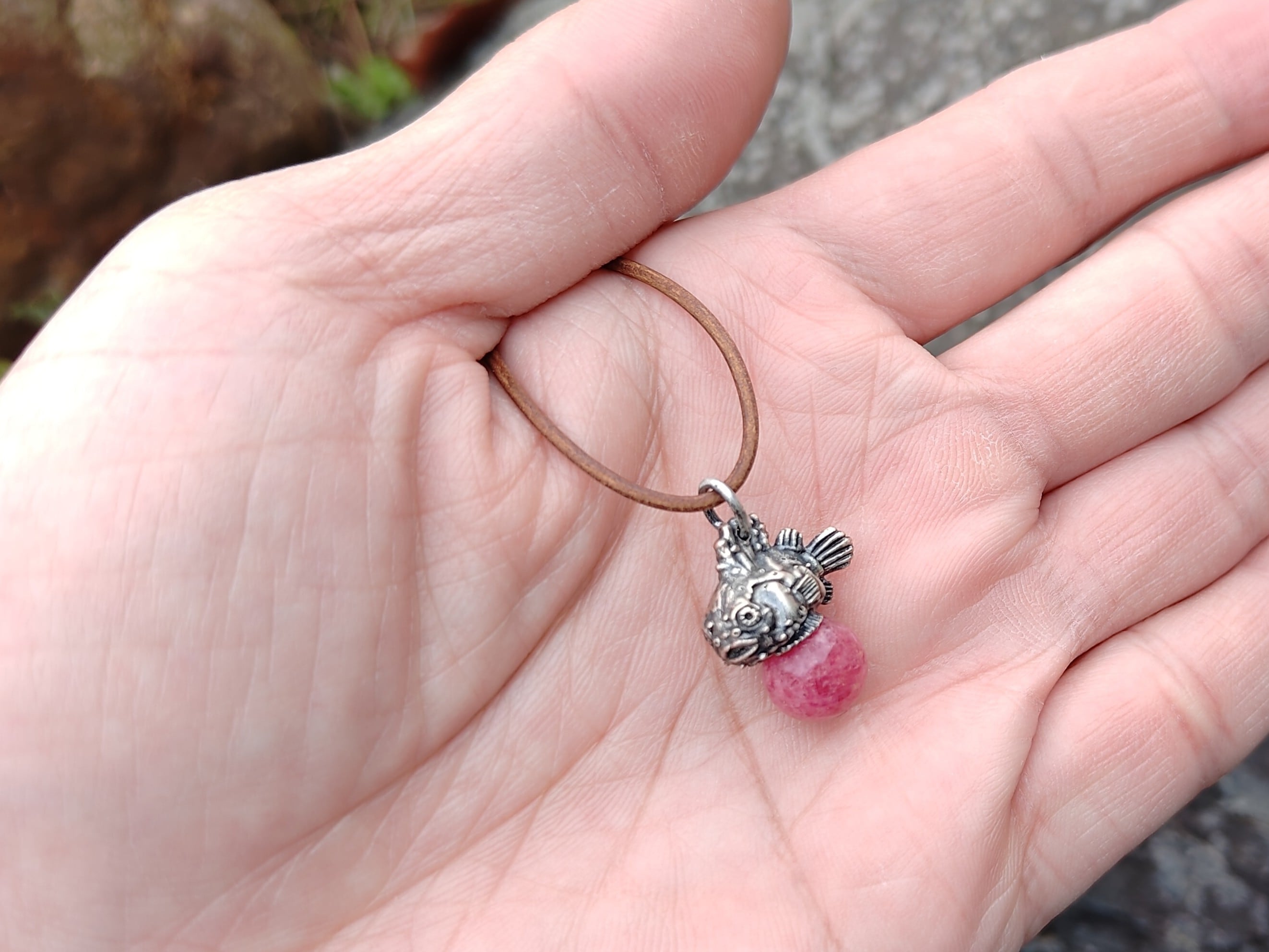 ■商品名 ダンゴウオのピンクシルバーペンダント、クリソプレーズ、ロードナイト、アメジスト、ラピスラズリ、革紐ネックレス付き