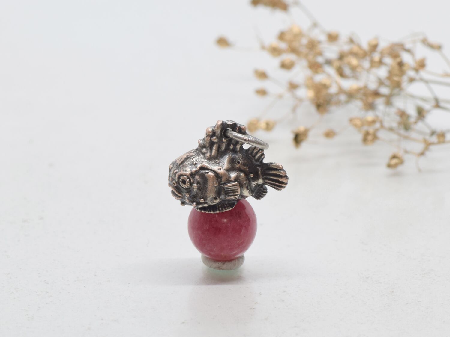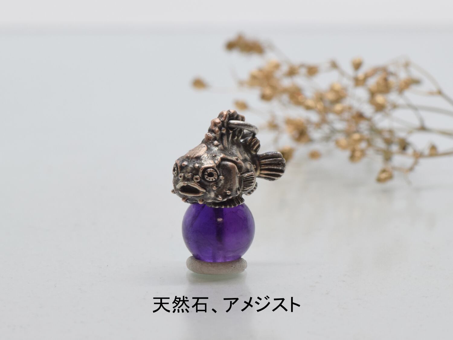 ダンゴウオ部分は独自配合で銀と銅を配合したピンクシルバーで製作しました。