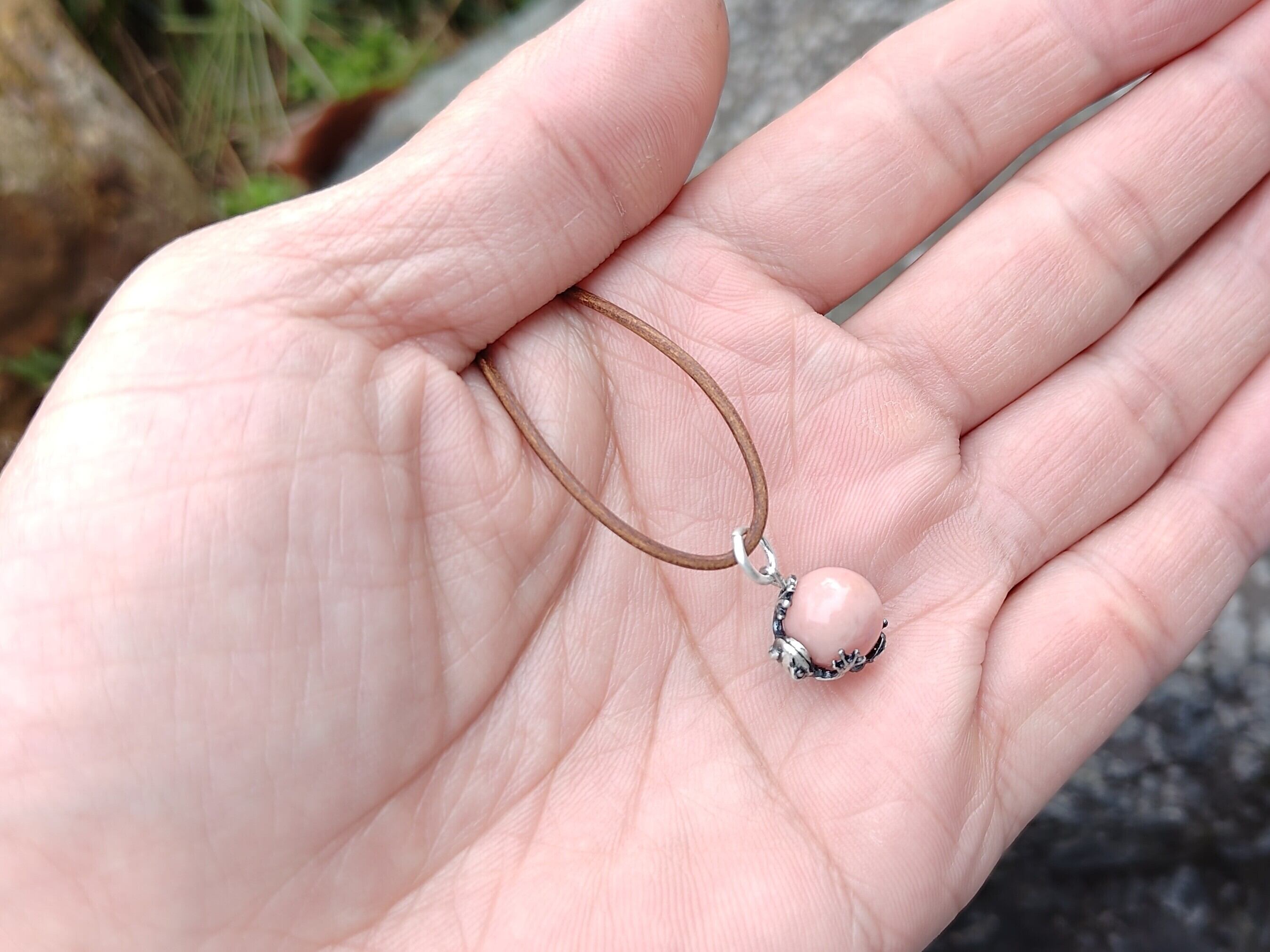 ■商品名 蛙(カエル)玉ペンダント ピンクオパール 革ヒモネックレス付き