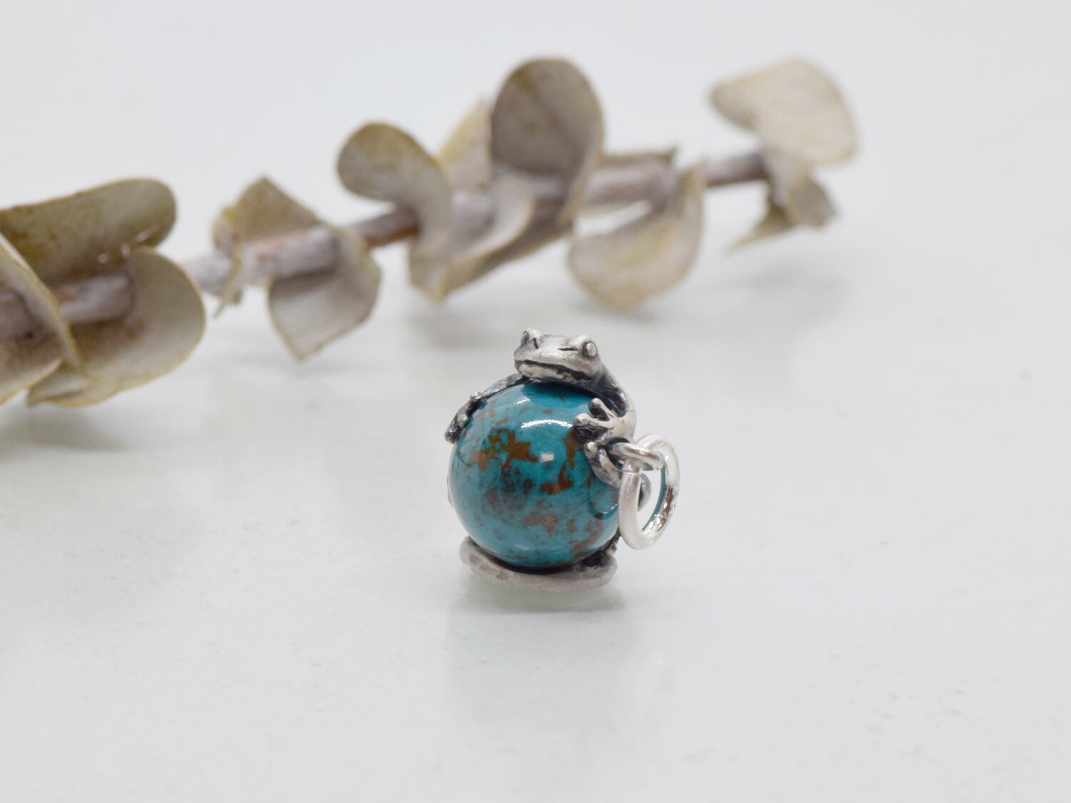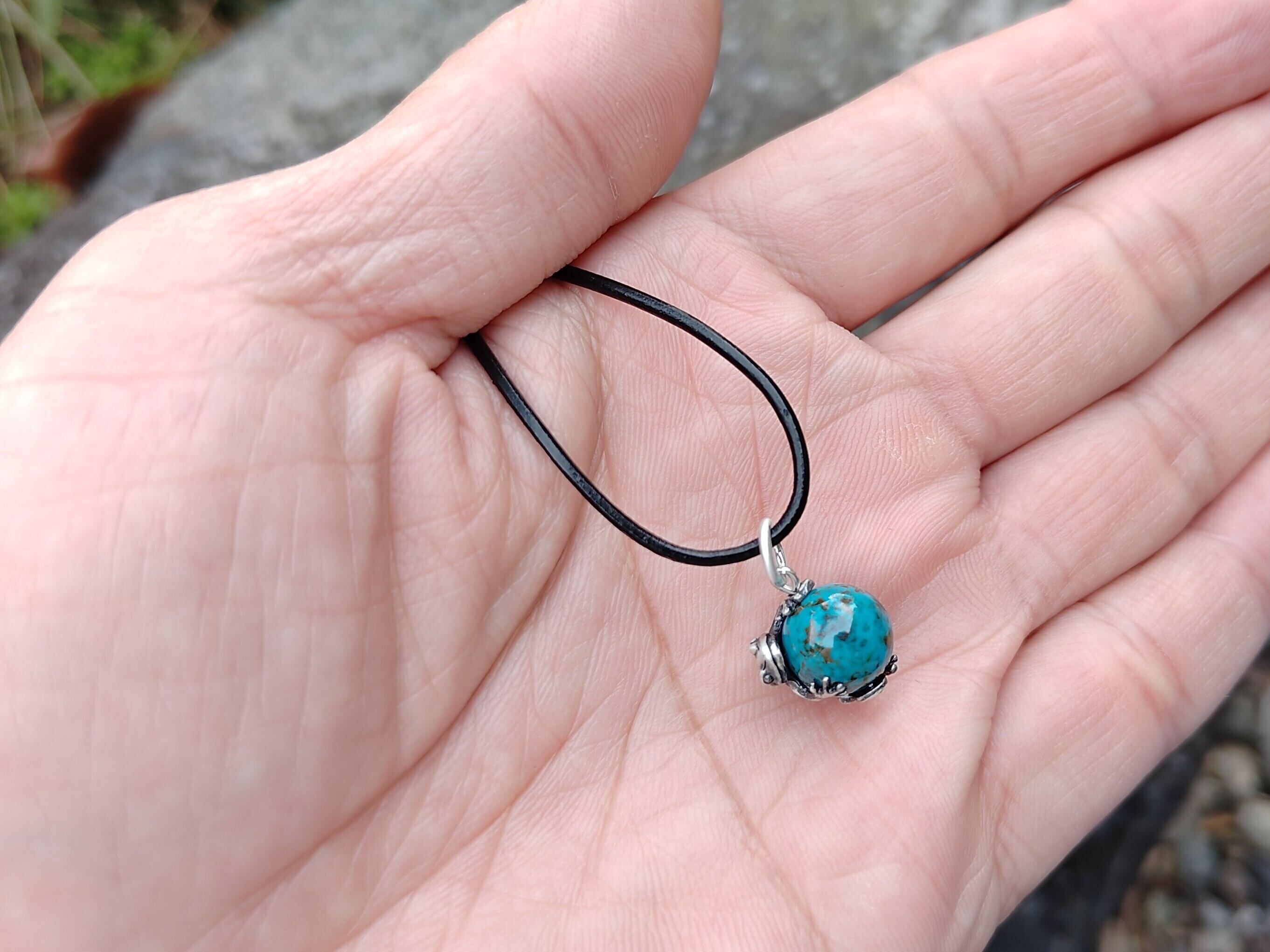 ■商品名 限定商品 蛙(カエル)玉ペンダント クリソコラ 革ヒモネックレス付き