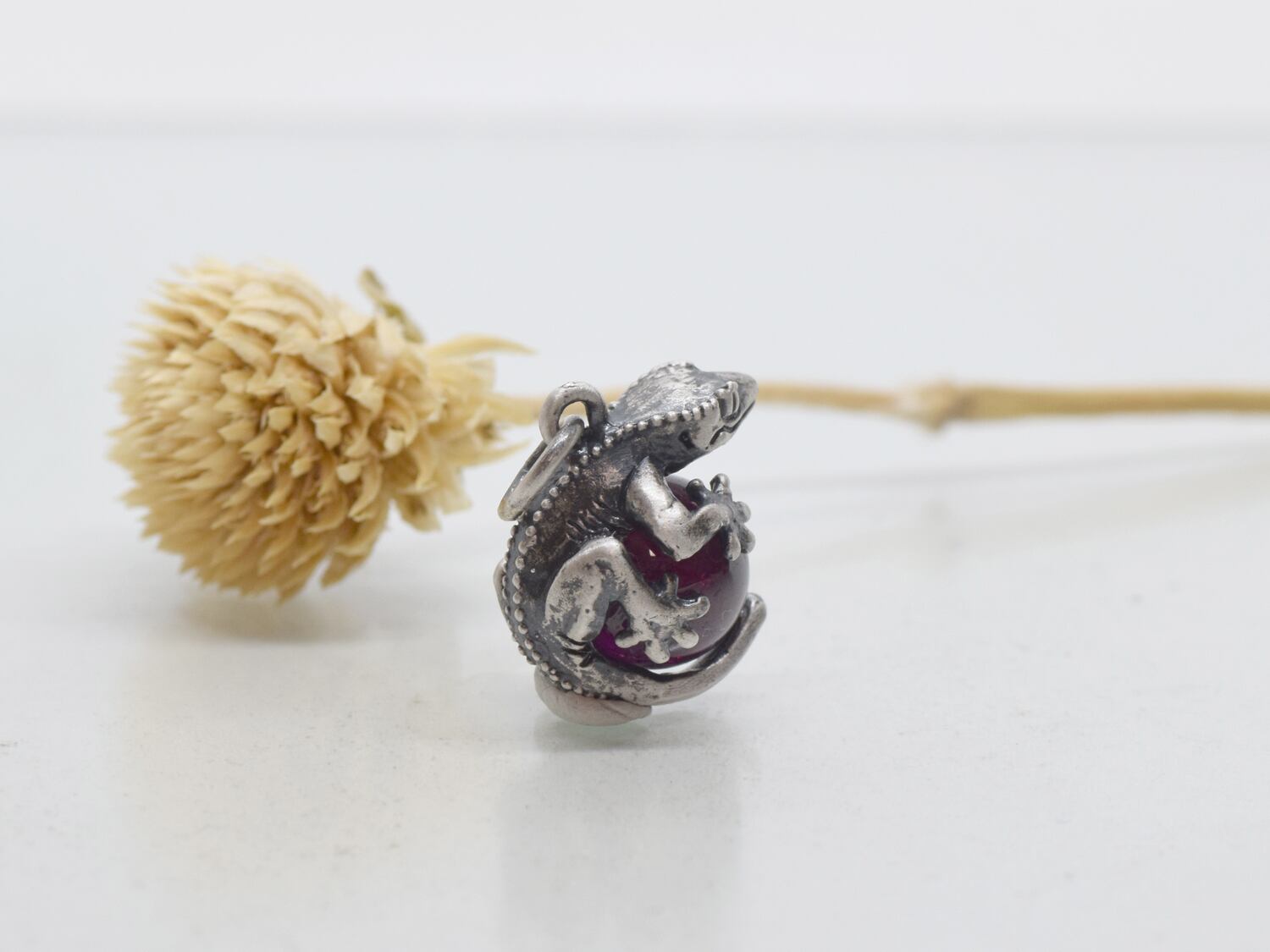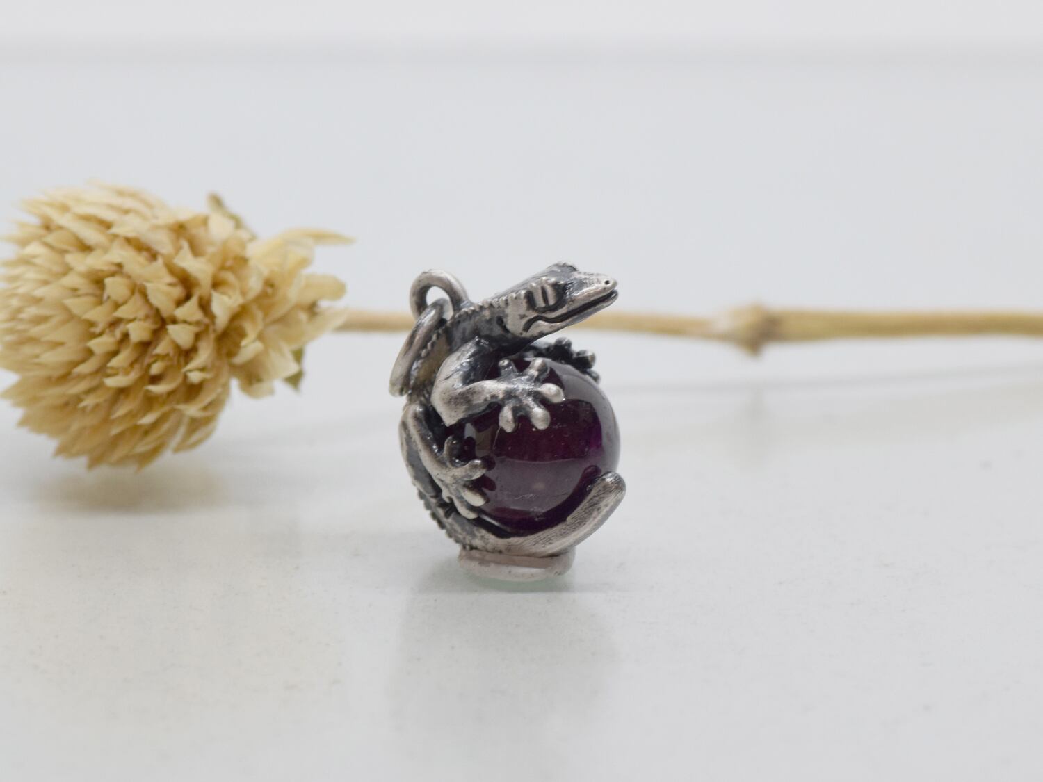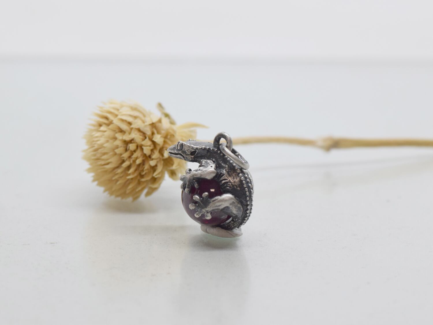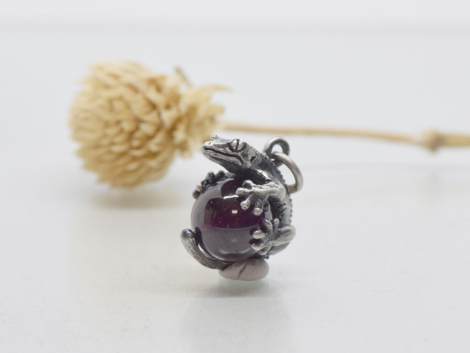 ■商品名 クレステッドゲッコー玉ペンダント ロードライトガーネット 革紐ネックレスつき