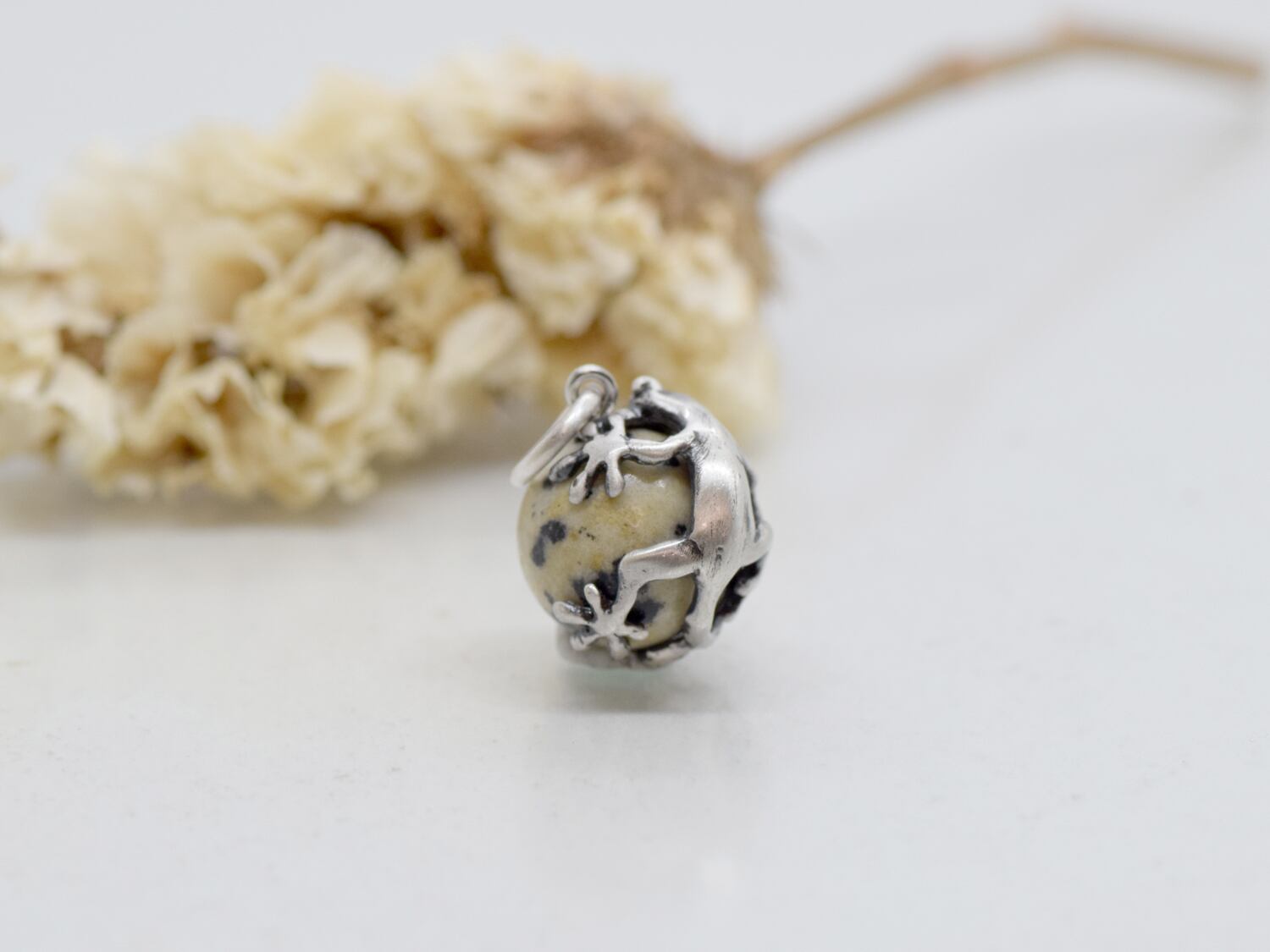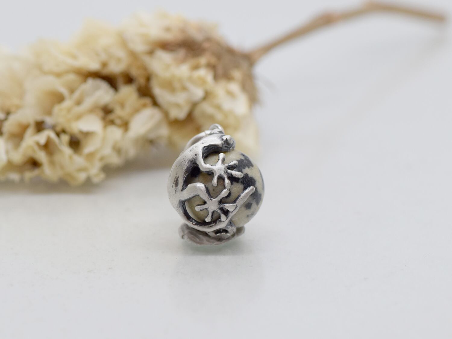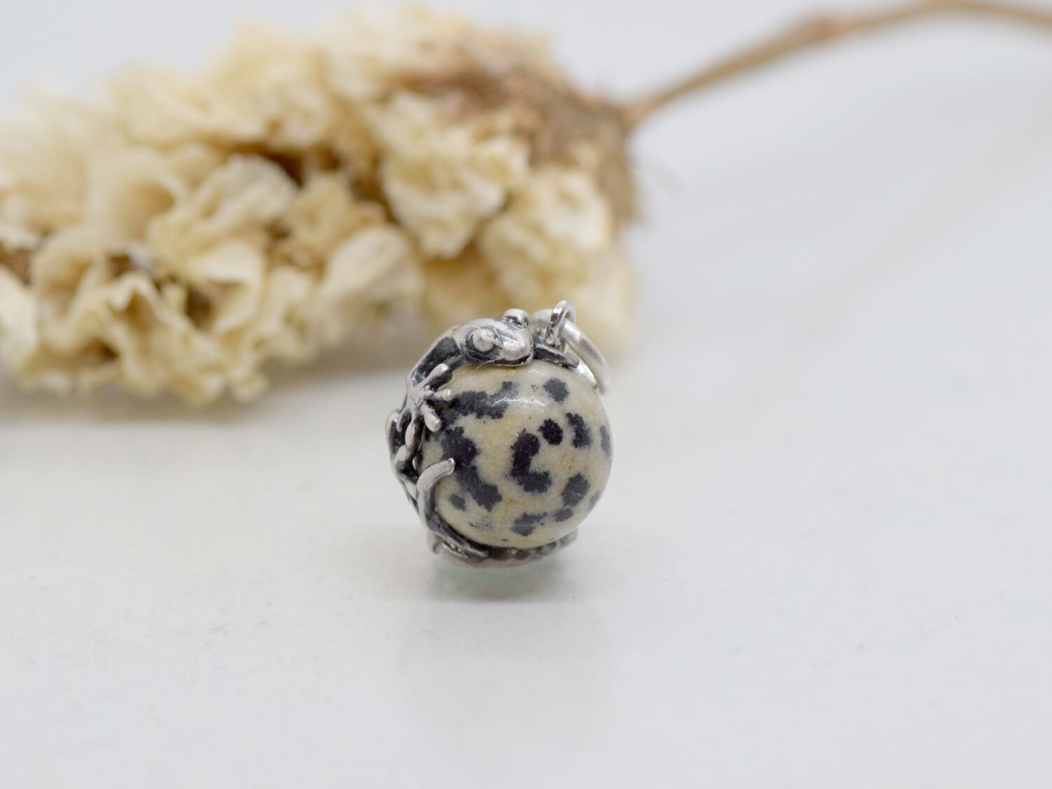 ■商品名 ヤモリ玉ペンダント ダルメシアンジャスパー 革ヒモネックレス付き