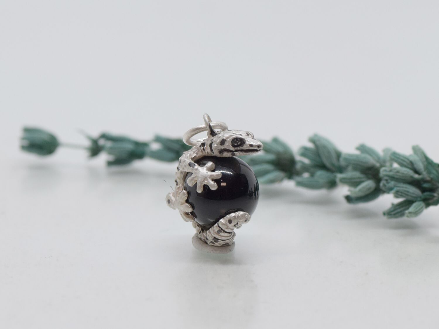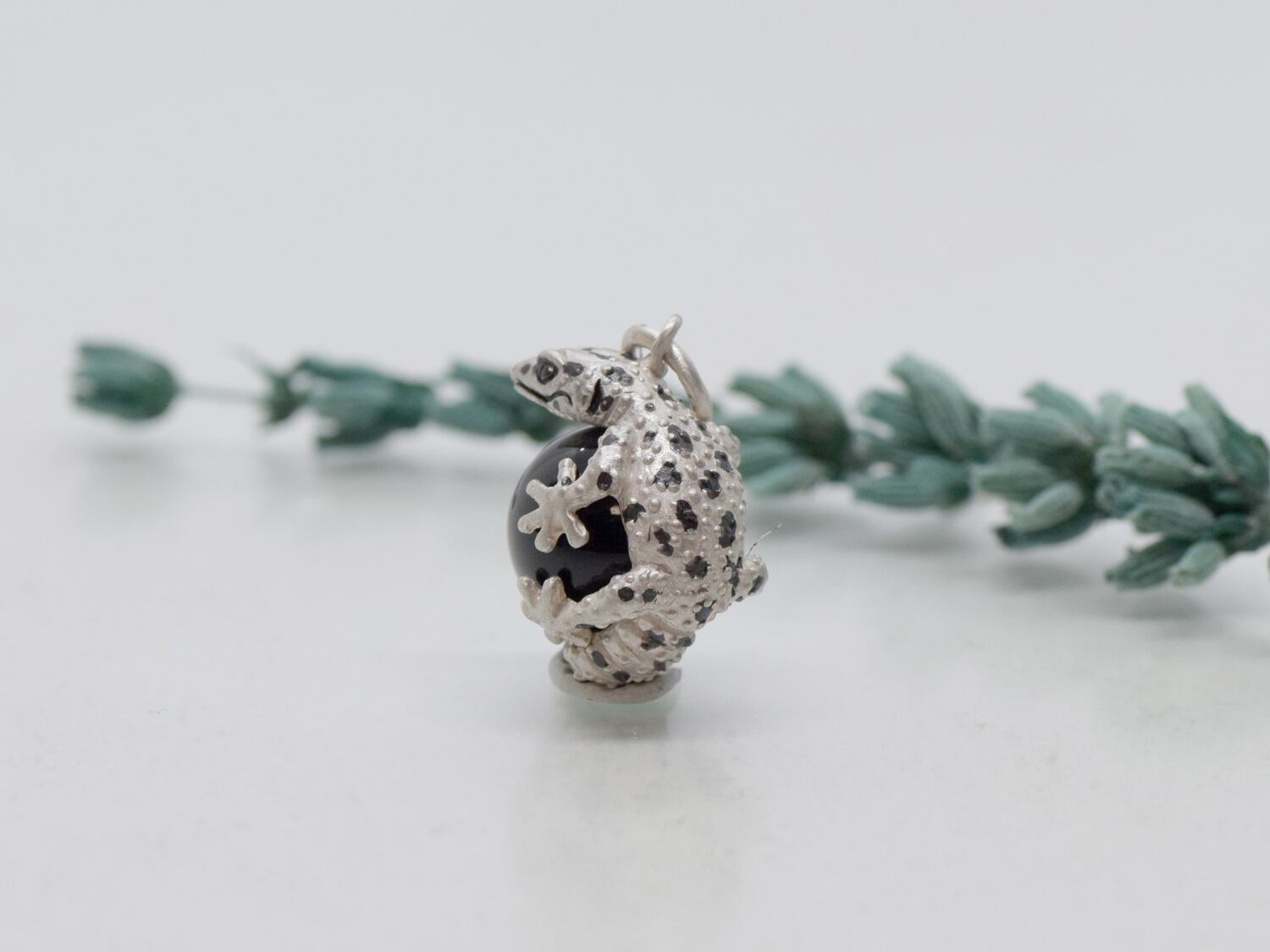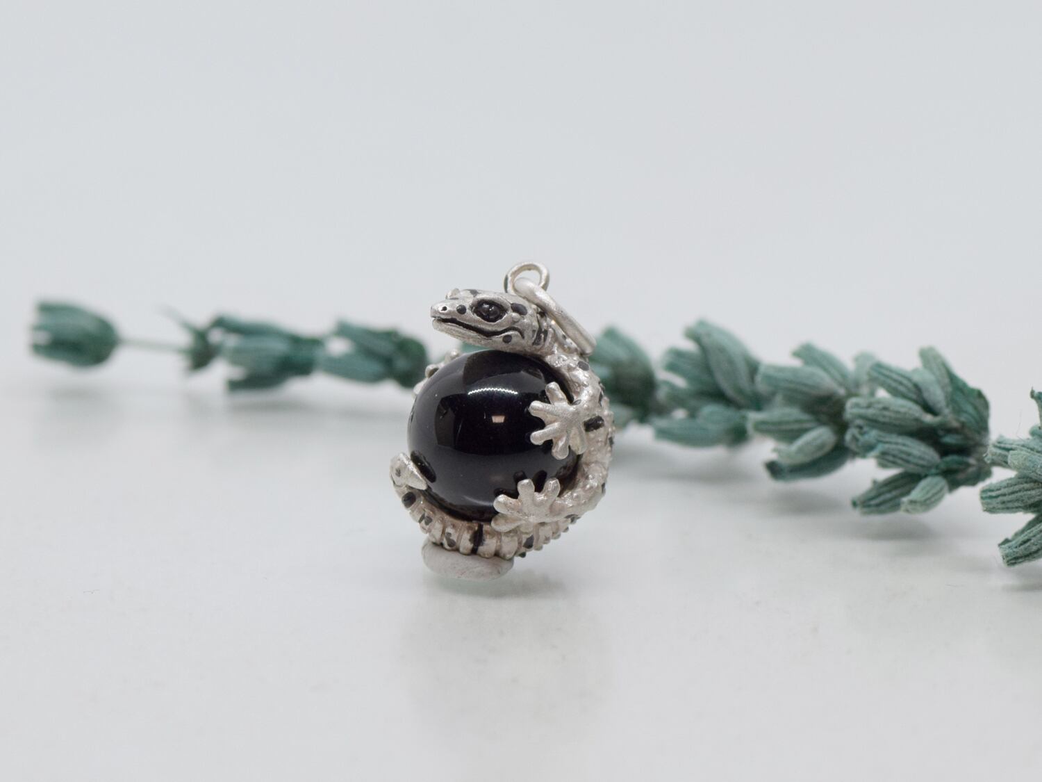 ■商品名 レオパードゲッコー (ヒョウモントカゲモドキ) 玉ペンダント モリオン(黒水晶) 革ひもネックレス付き