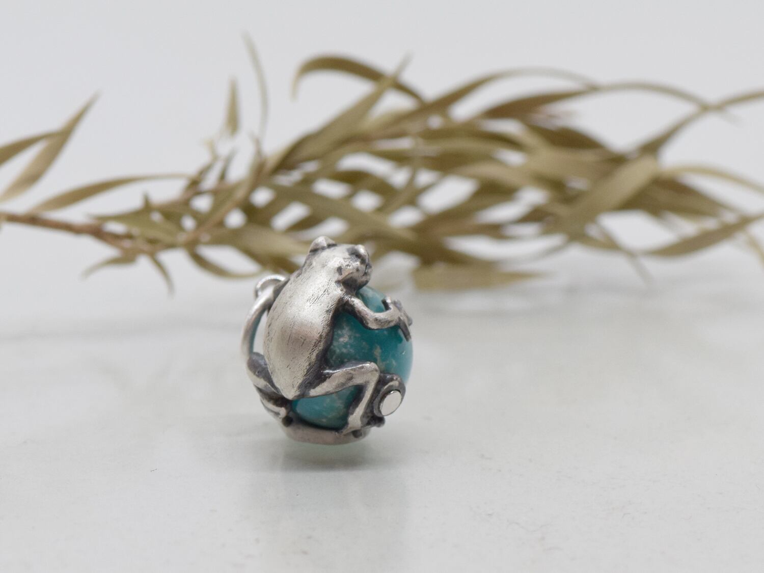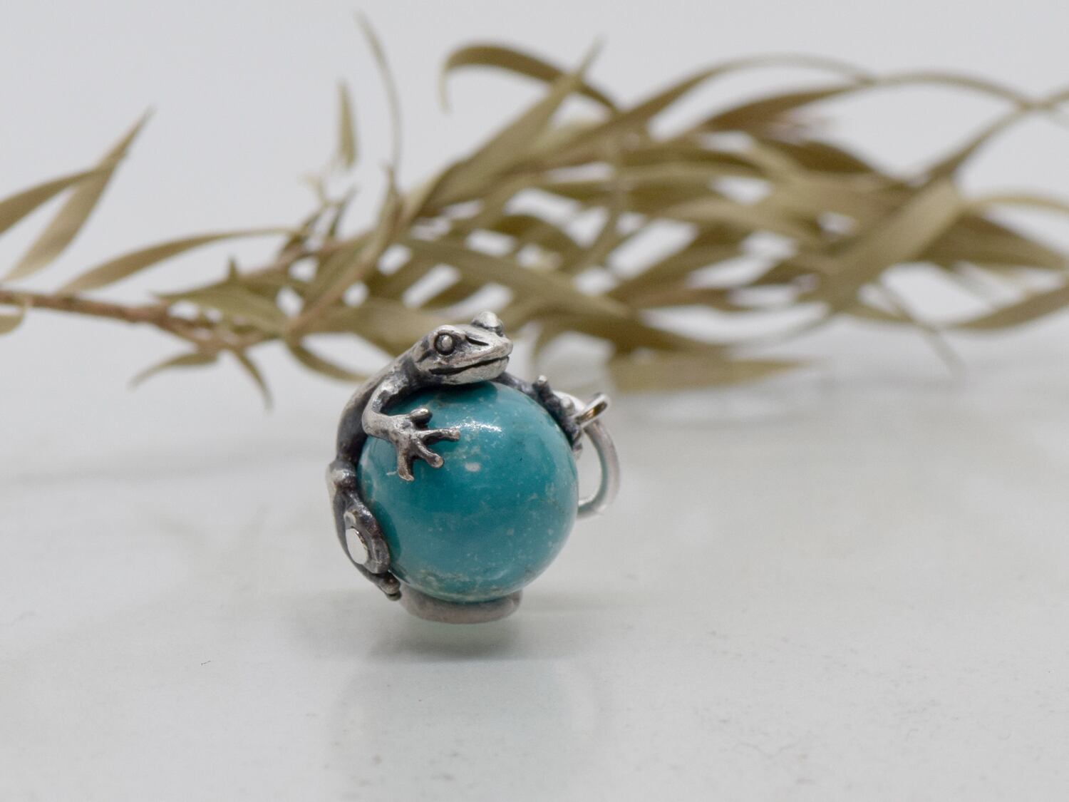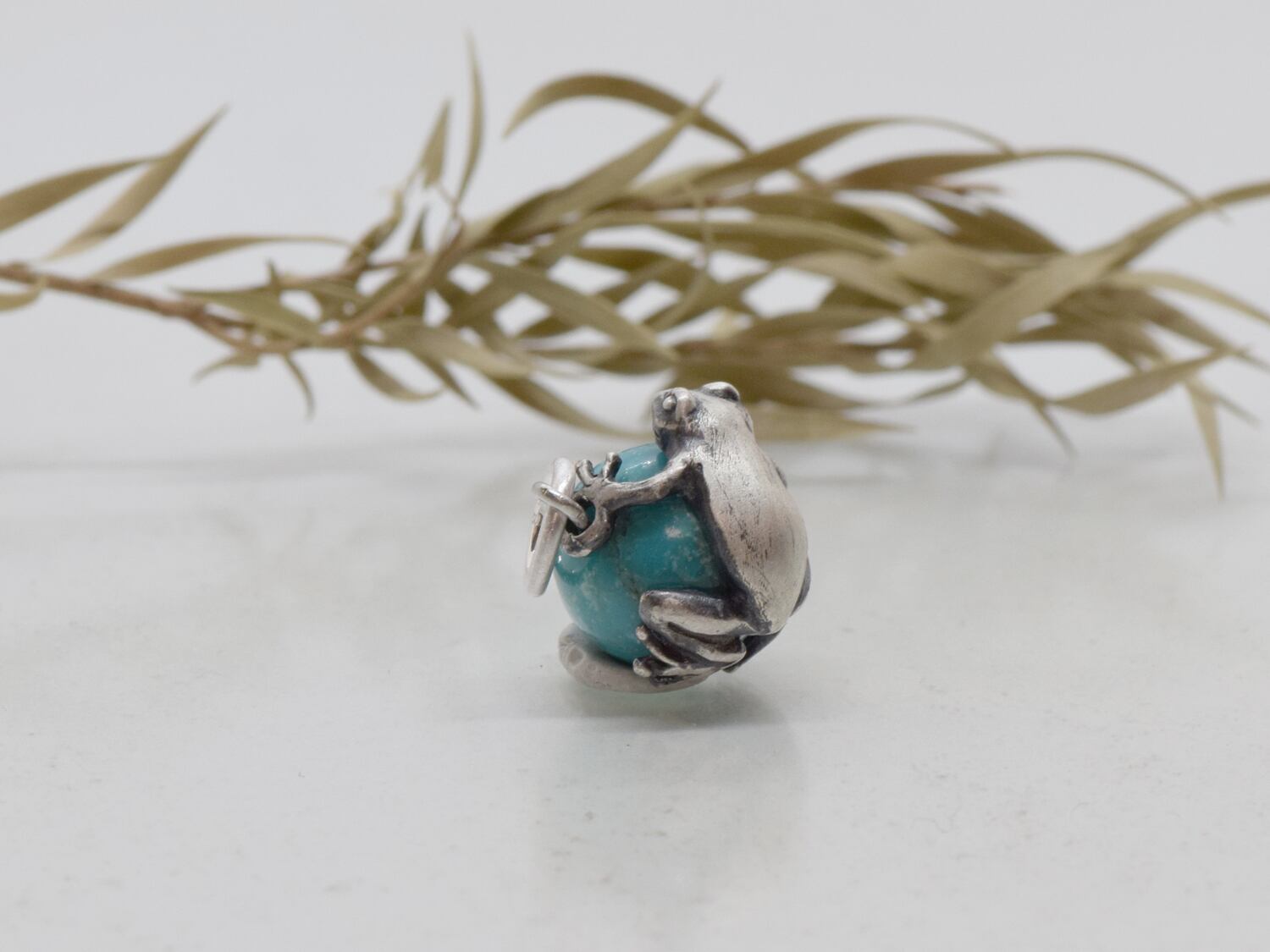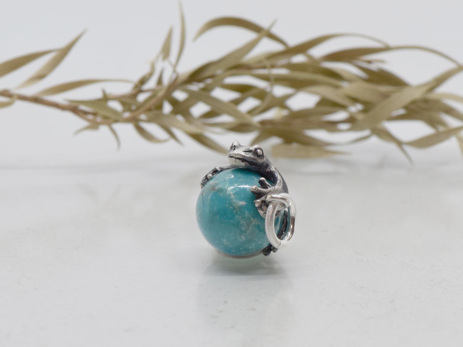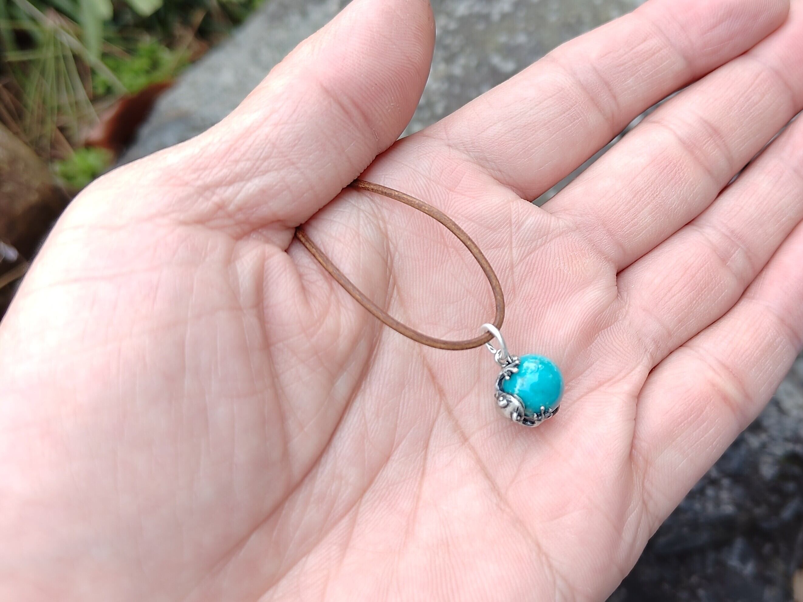 ■商品名 蛙(カエル)玉ペンダント ターコイズ 革ヒモネックレス付き