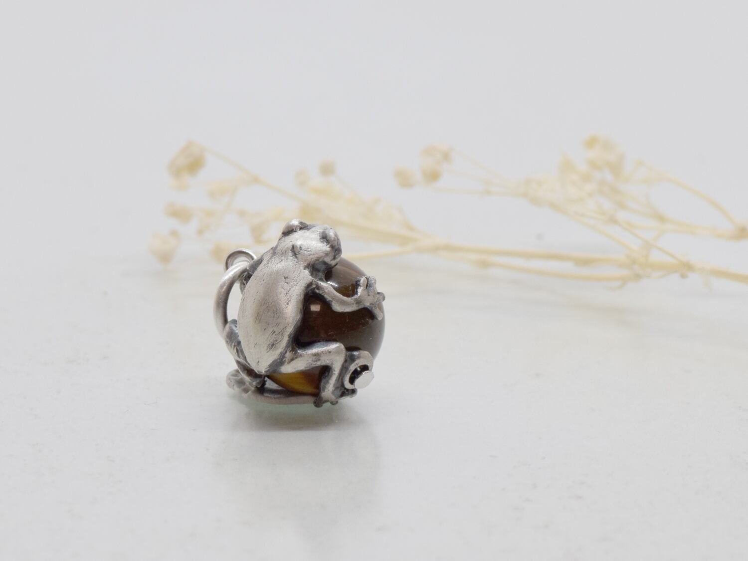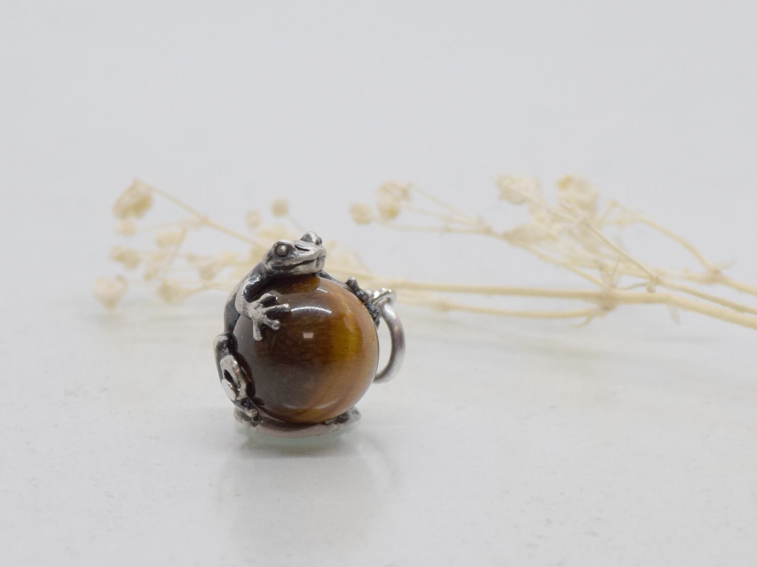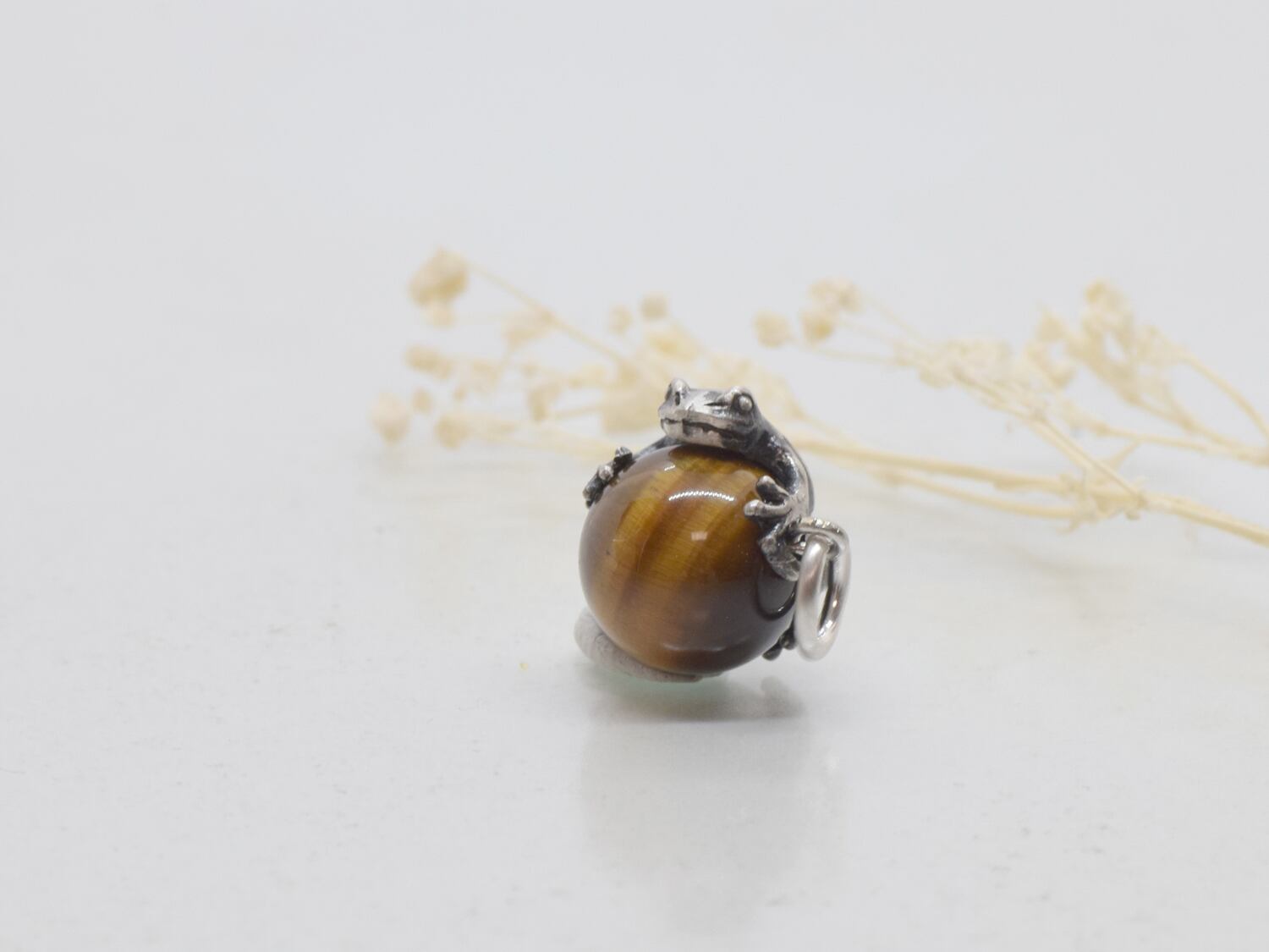 ■商品名 蛙(カエル)玉ペンダント タイガーアイ 革ヒモネックレス付き