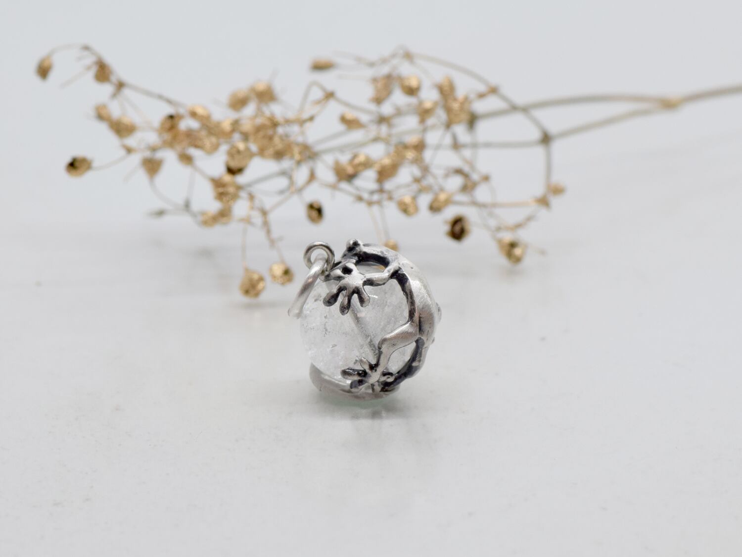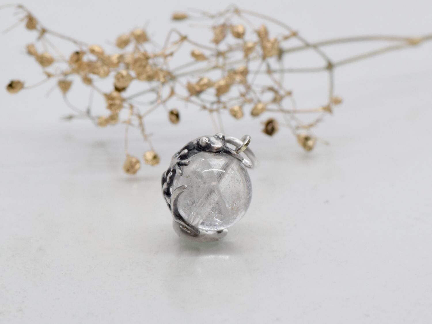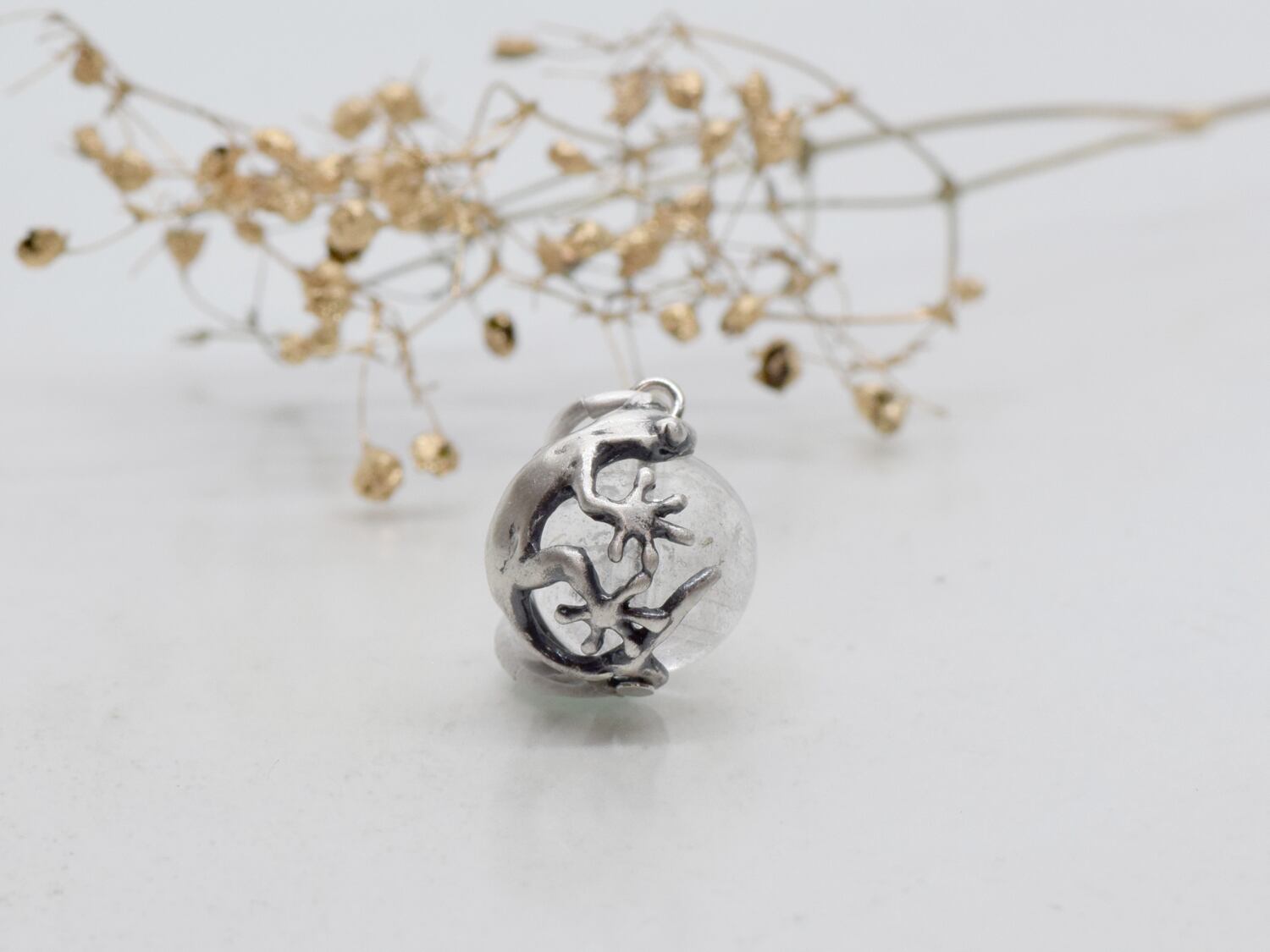 ■商品名 家守(ヤモリ)玉ペンダント ヒマラヤ産水晶 革ヒモネックレス付き
