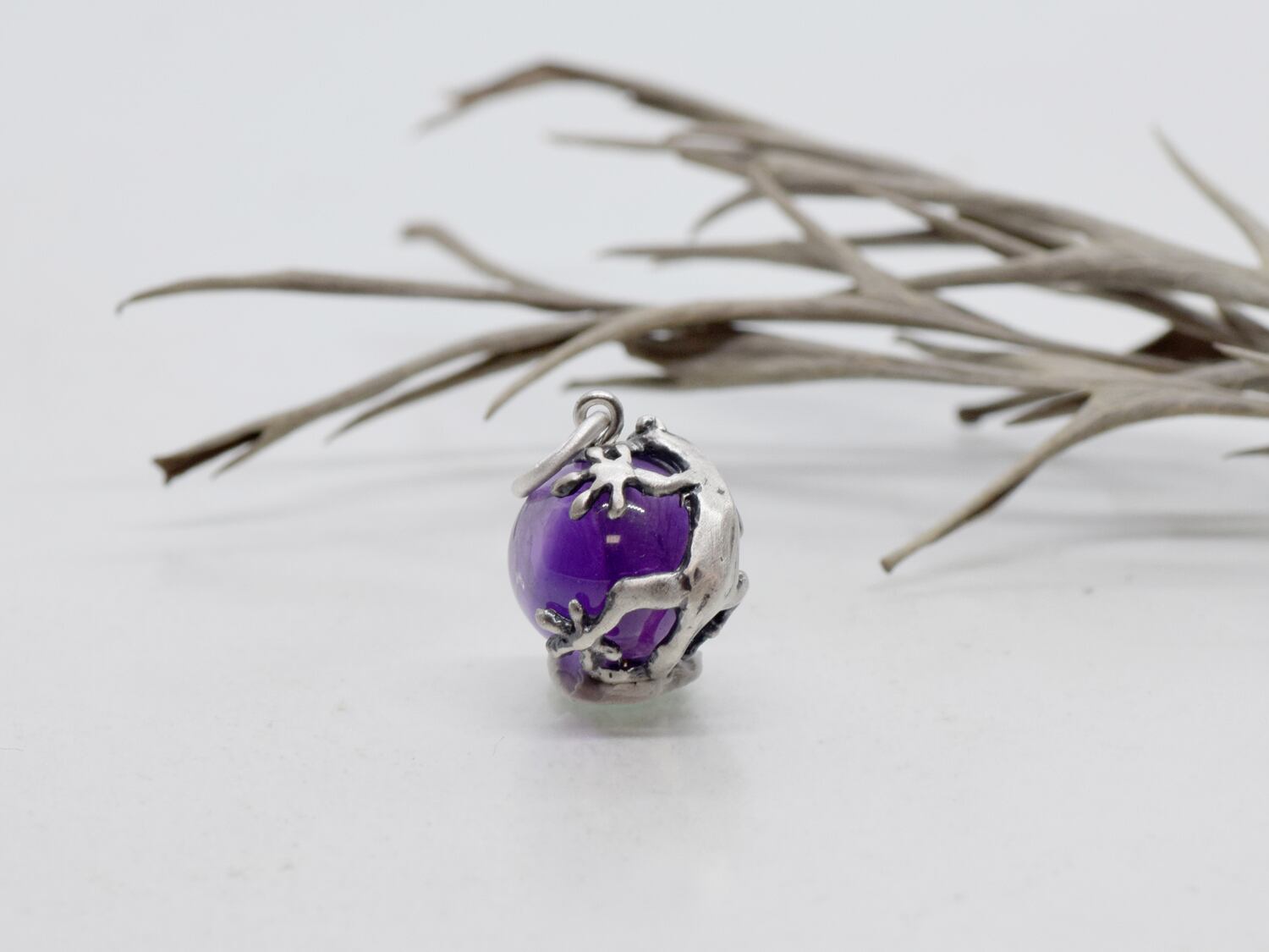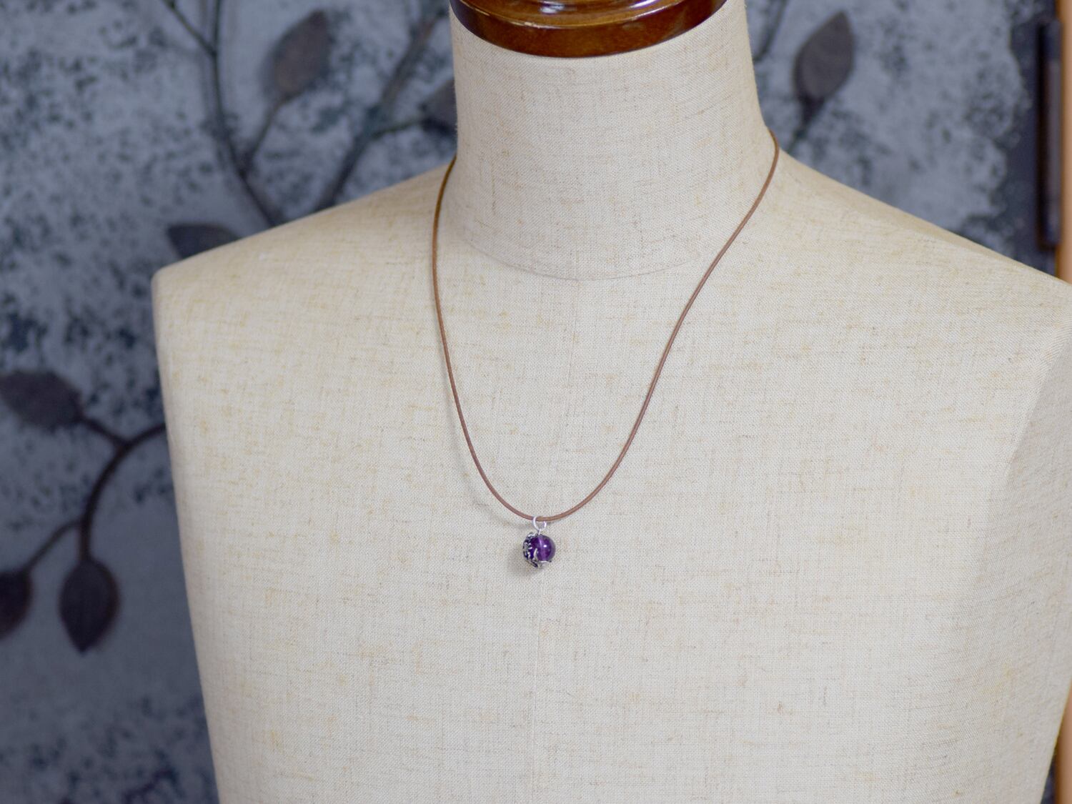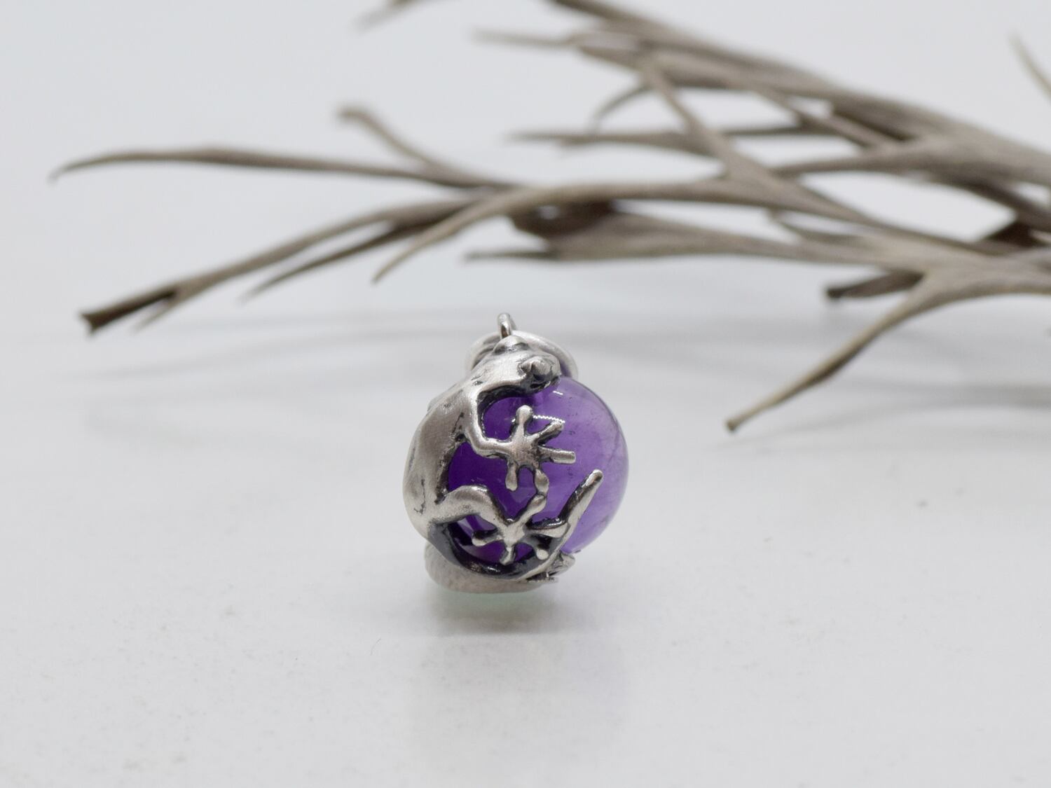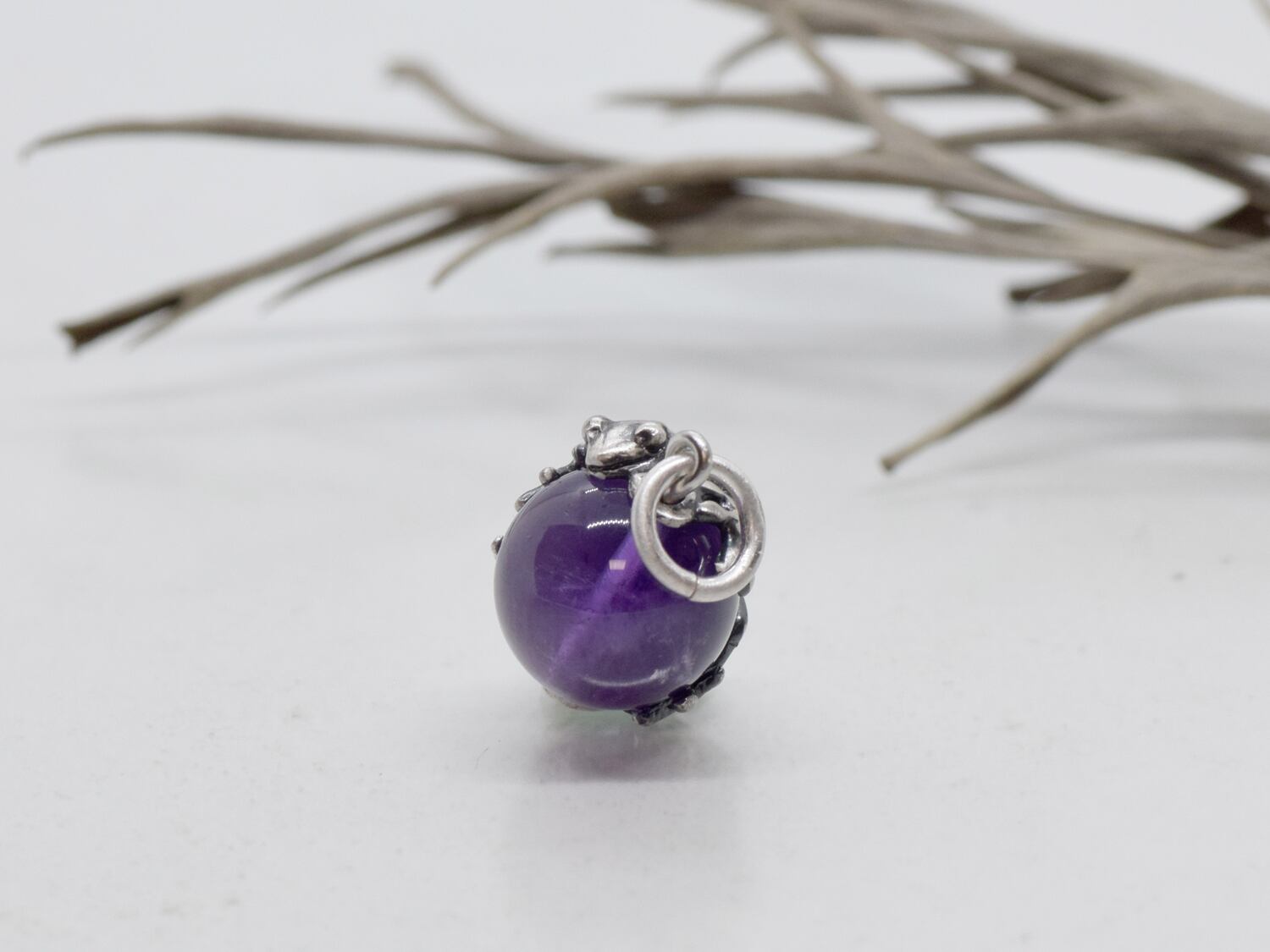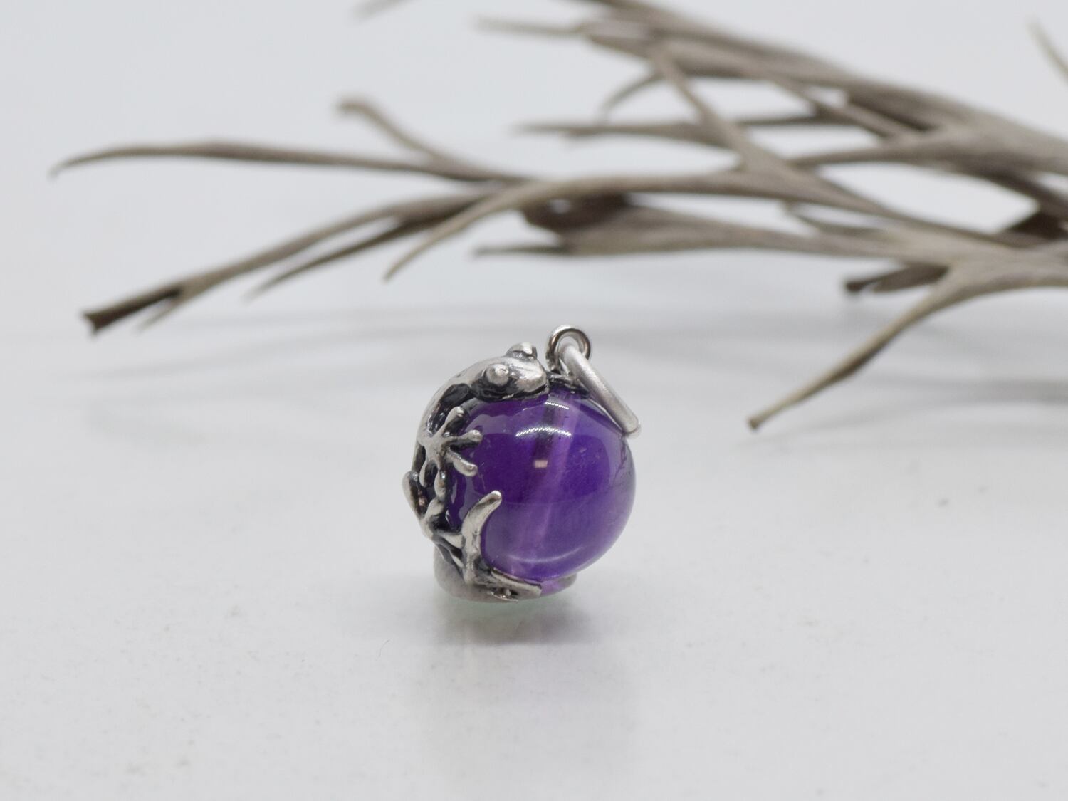 ■商品名 家守(ヤモリ)玉ペンダント アメジスト 革ヒモネックレス付き