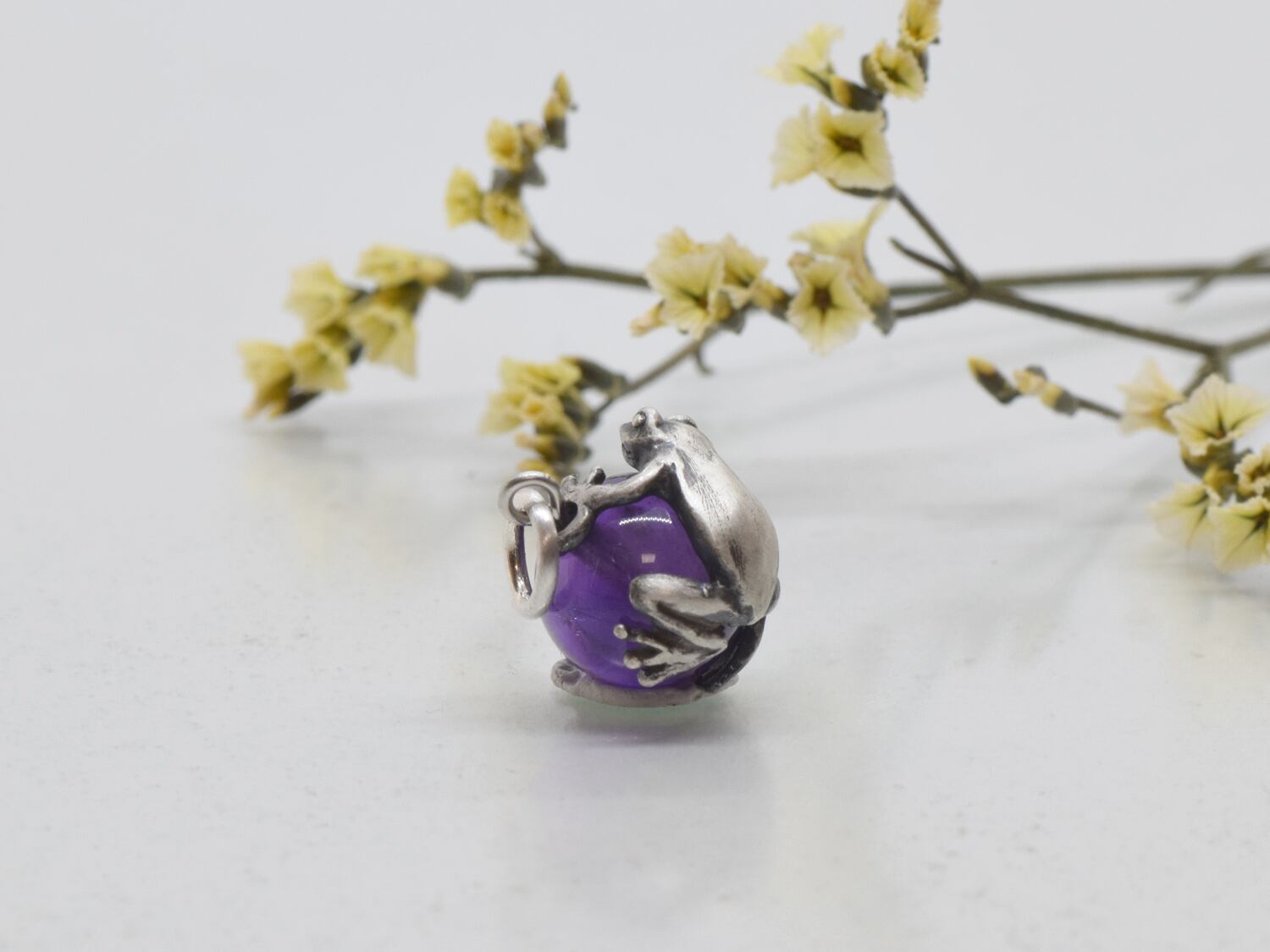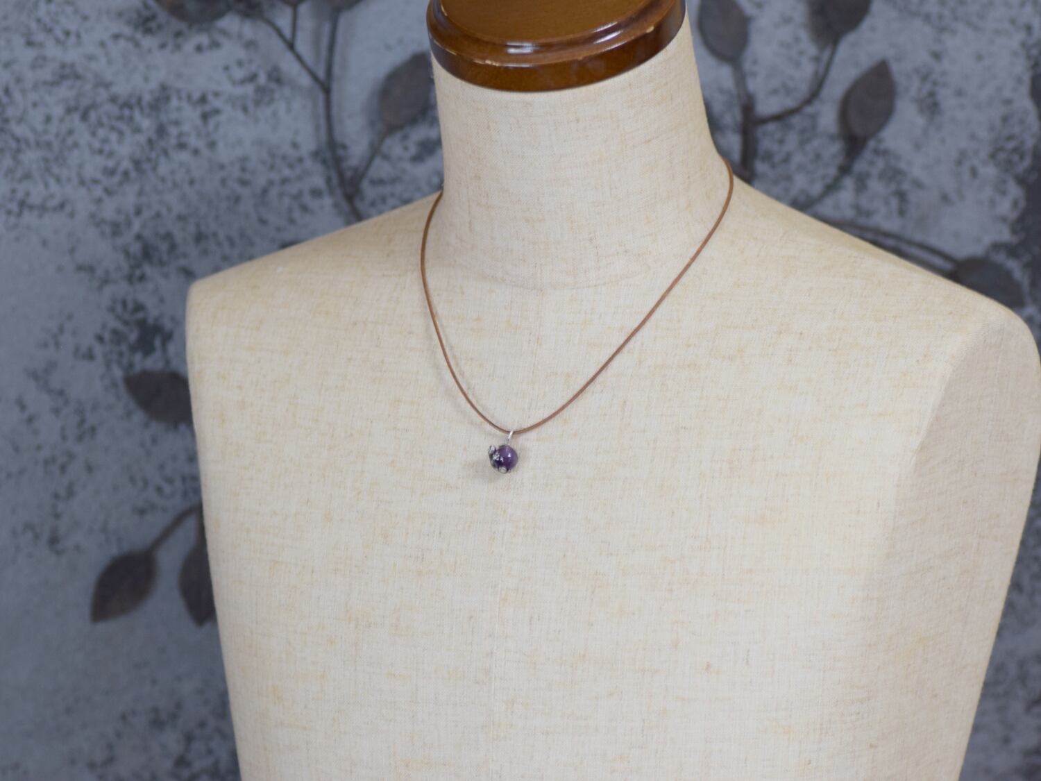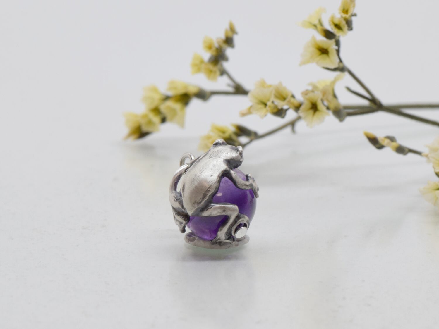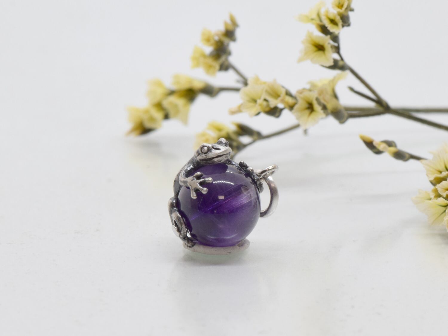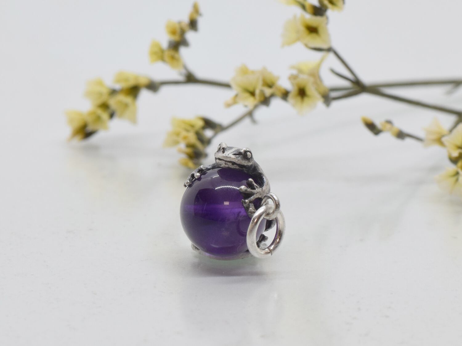 ■商品名 蛙(カエル)玉ペンダント アメジスト 革ヒモネックレス付き