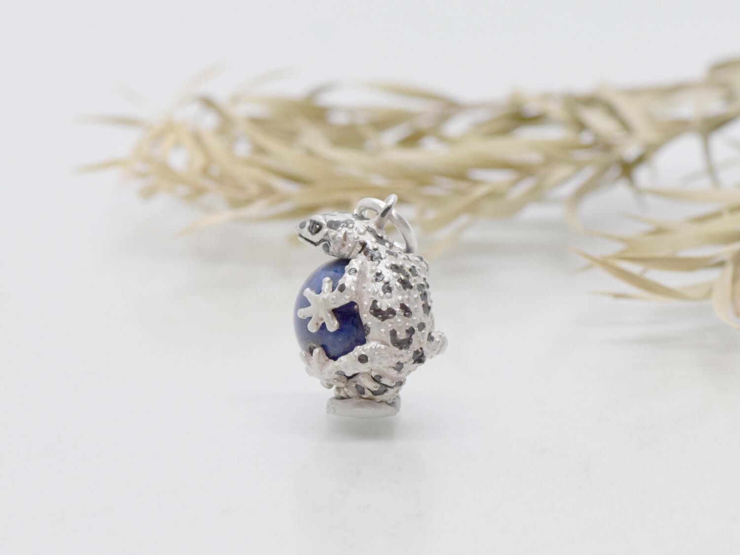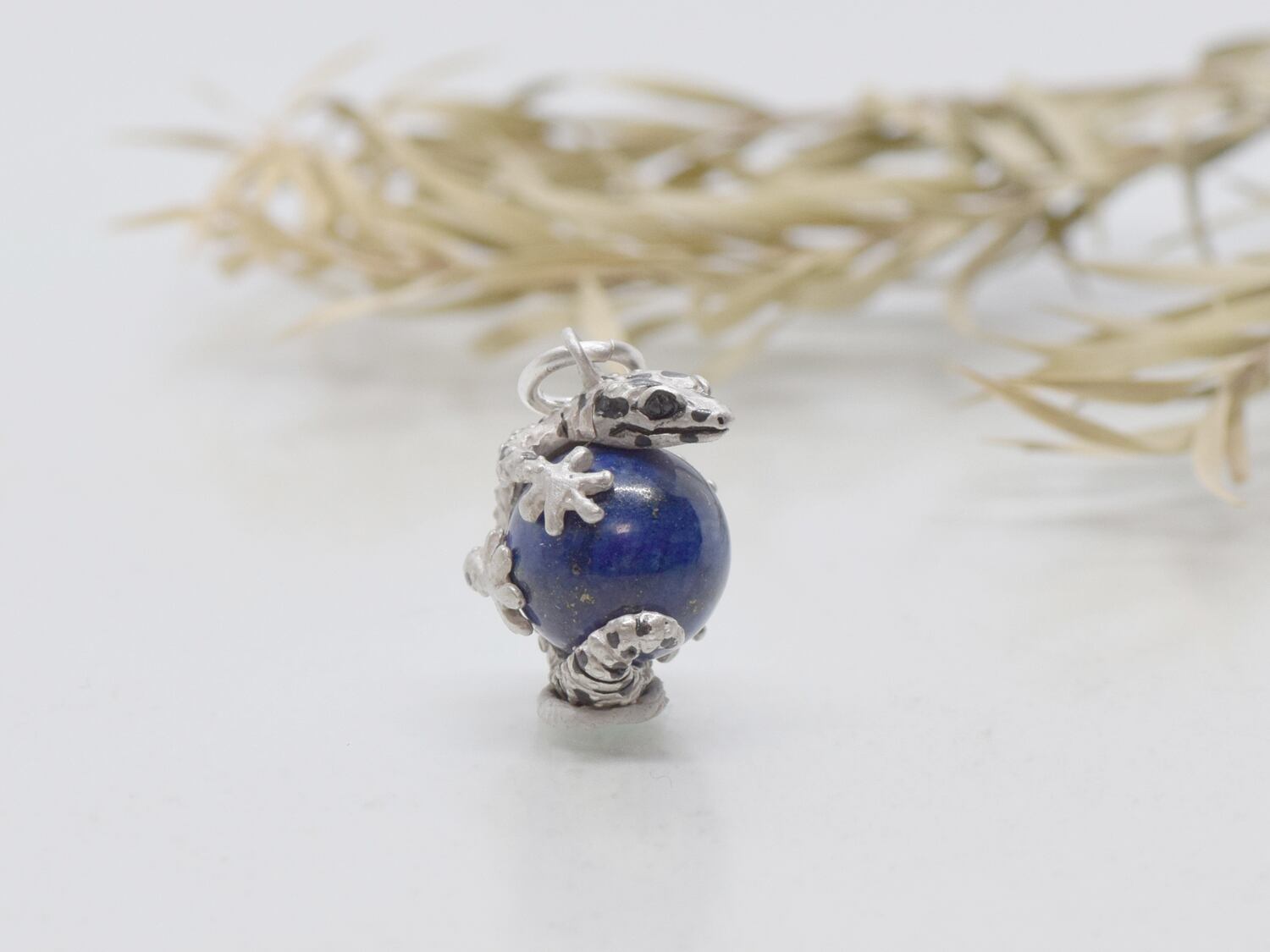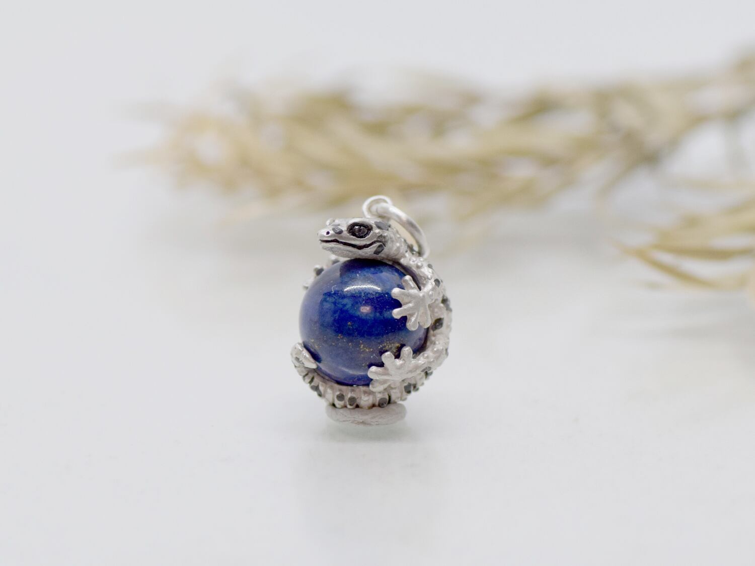 ■商品名 レオパードゲッコー (ヒョウモントカゲモドキ) 玉ペンダント ラピスラズリ 革ひもネックレス付き